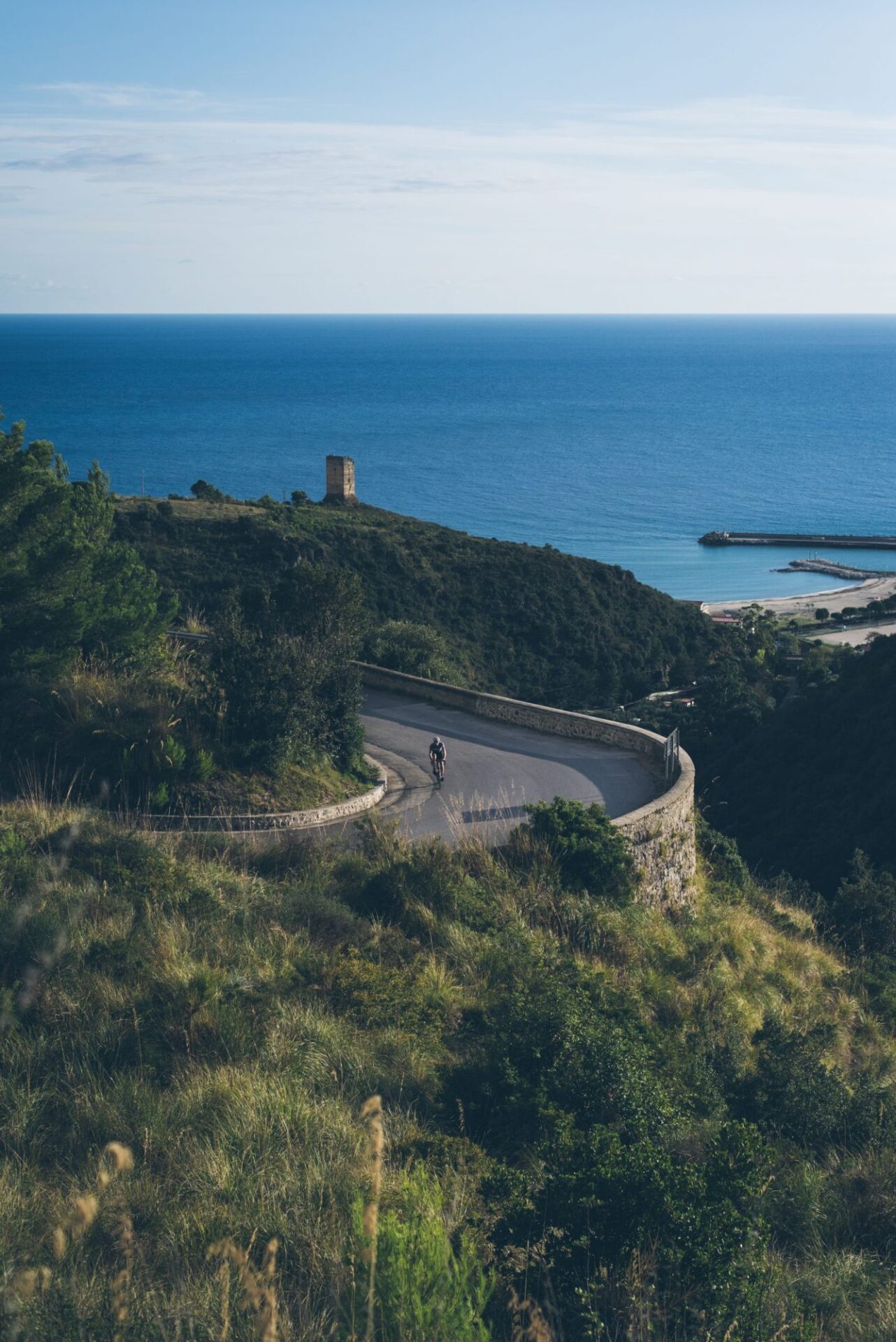 The only pitstop was located in Positano, and from then on it was a matter of following the coastal line until they reached the province of Cosenza, where they headed to Reggio Calabria through the Apennine mountain range, which is spread along the whole peninsular Italy. There, they caught the ferry to Messina, Sicily, and what was left were two proper climbs: the Portella Mandrazzi and the final push to reach the Crateri Silvestri in Mount Etna, just below 2.000m of elevation. The first five riders caught the ferry already on the second night, covering around 850km in less than 48 hours.