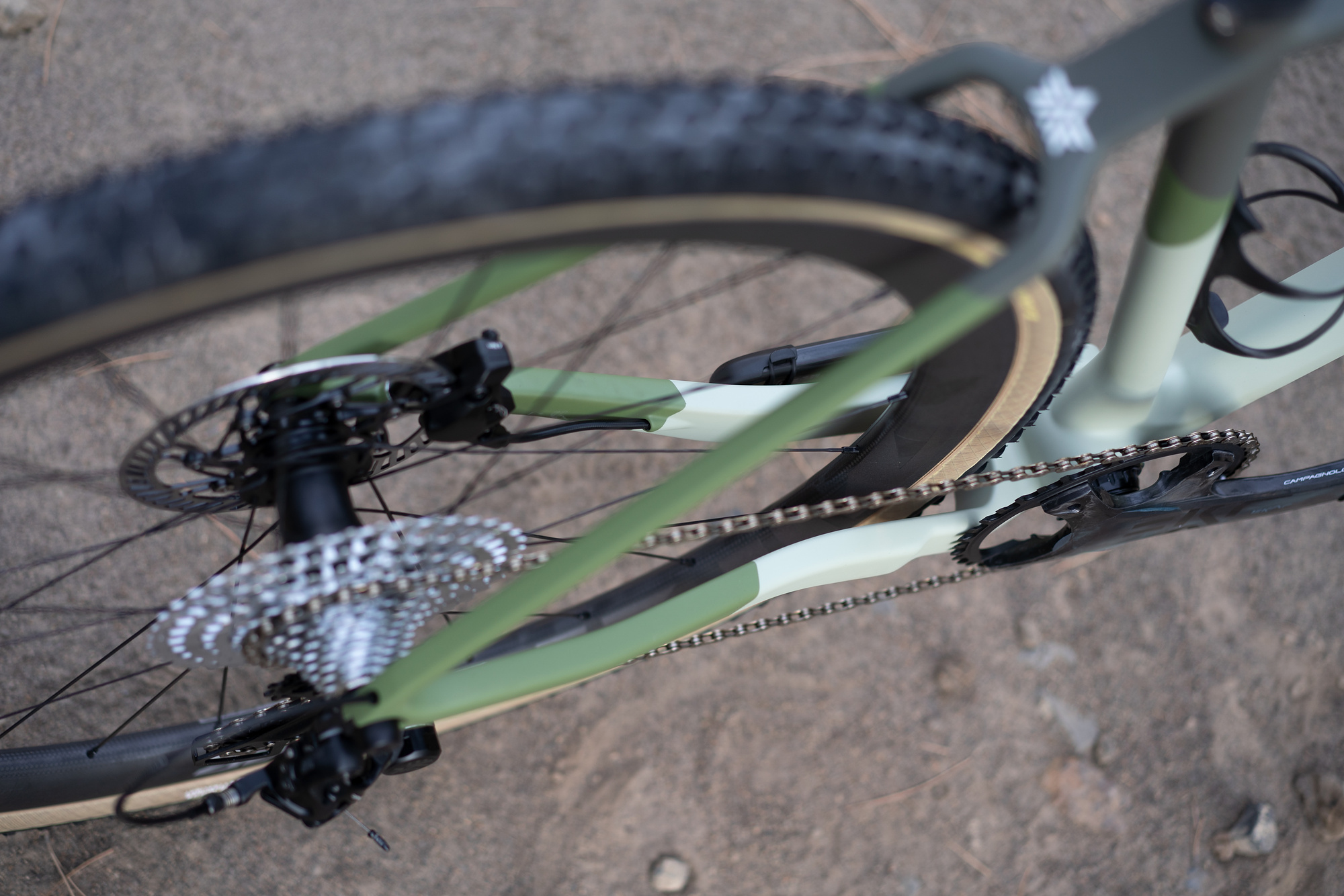 On the first ride of the GiRodeo, which had a rather rolling terrain, we were able to have the first contact with the Argonaut GR3 and one word jumped directly to our minds, speed. Its geometry is designed for the purest American gravel style, with a long front part that makes it very stable and allows you to ride fast. However, that does not mean that it is slow in the corners since we can get into them without any problem thanks to the shorter rear. It compensates the front part and although we have to be more aware in very tight turns, if you are able to carve as in a MTB, this bike will allow you to do it and will make you come out of the corner even faster. By having short chainstays, Argonaut had to find a compromise between the maximum tire width and the space of the chainring, so they went for wide tires and a single chainring, following the market trends.