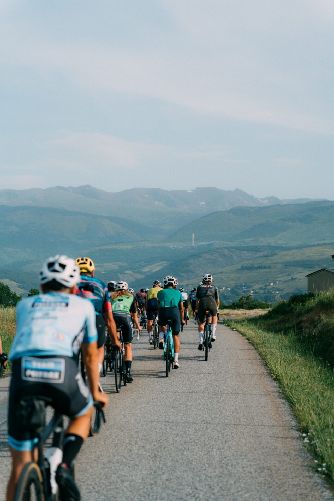 On June 14, 80 cyclists gathered in front of the Pertot store in Puigcerdà to start the Baselayer Challenge. Among them, many members of the Cerdanya Cycling Culture collective, other local cyclists, and foreigners like us, persuaded by the beauty of the area. There were two official routes: the Ultimate featuring five climbs, and the Essence, which reduced the number of climbs to the two toughest ones. Beyond these non-marked routes, everyone was free to add or subtract ascents based on their physical conditions. One way or another, pizzas were waiting for us back in the store.