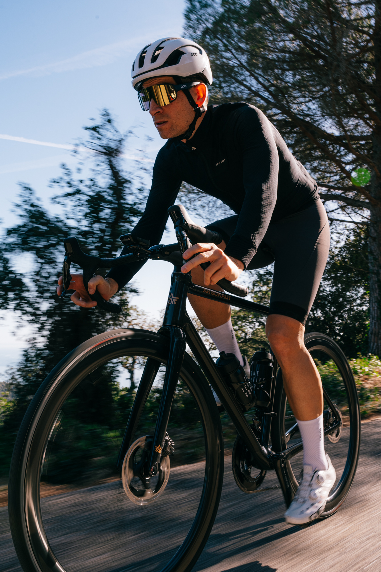 During the entire route, we had the feeling that the bike rolled very easily. We felt really comfortable while pushing the pedals, and the new carbon wheels that the brand is manufacturing in-house probably contribute to this.