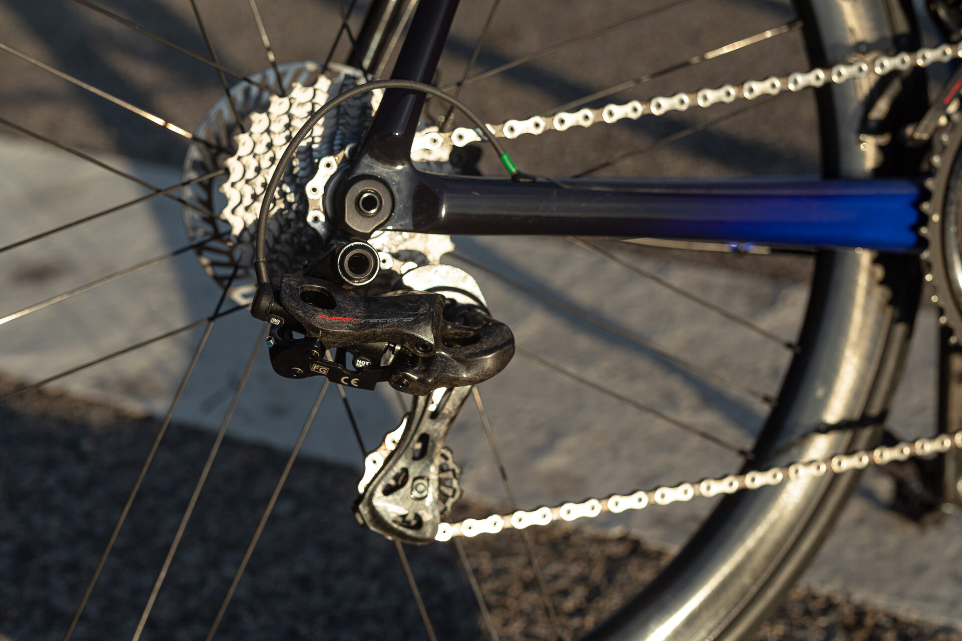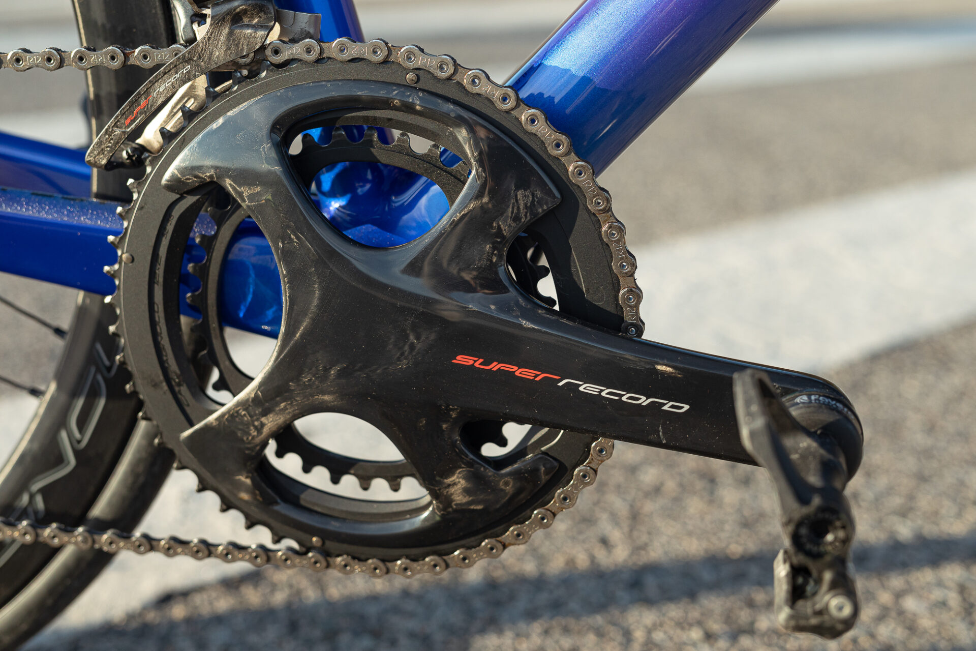 Once we went over the frameset, we should discuss the whole setup, which is certainly top. The manipulation of the Campagnolo Super Record EPS 12, despite its enormous levers, is very precise and fast. The wheels, from the Italian brand as well, exhibit an ‘aero’ high profile, fulfilling the high standard of the groupset. The feeling of the hydraulic disc brakes is very progressive and predictable, which adds up to the sensation of reliability of the frame.