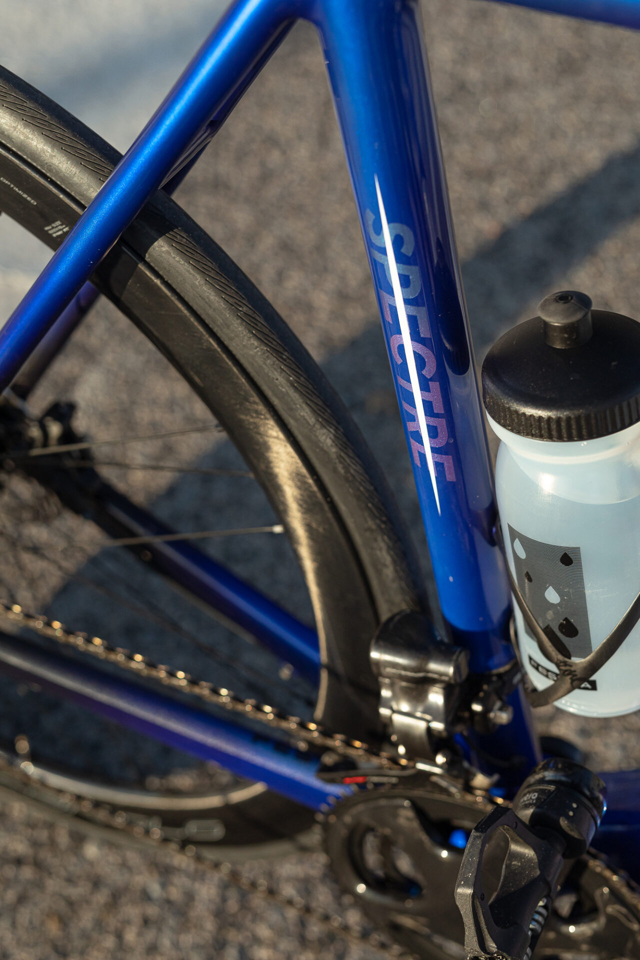The round tubing of the Spectre translates into a classical appearance with a slight sloping and the Columbus Futura as the fork. The frameset has a very elegant presence with palpable high-quality smooth lines.