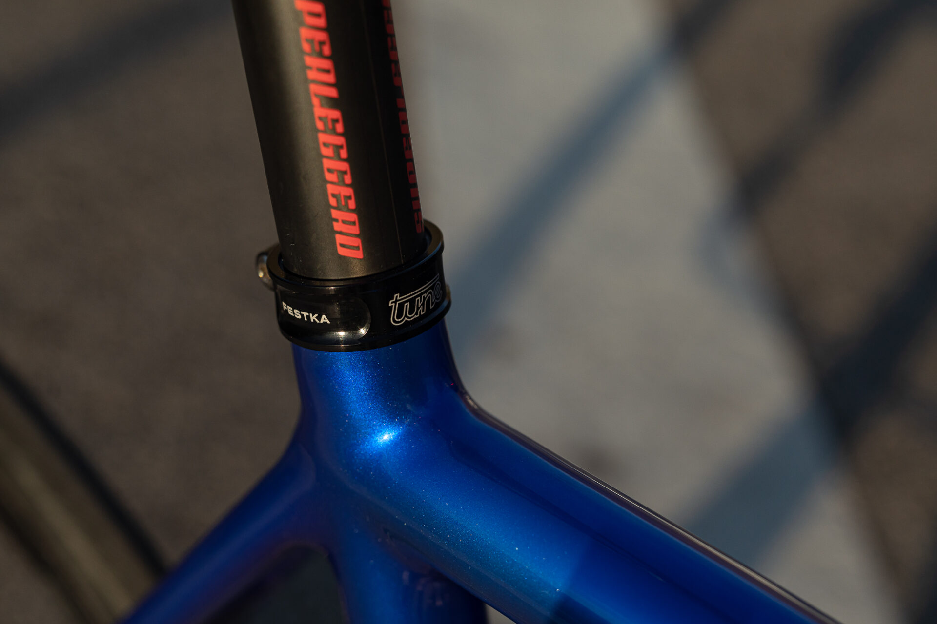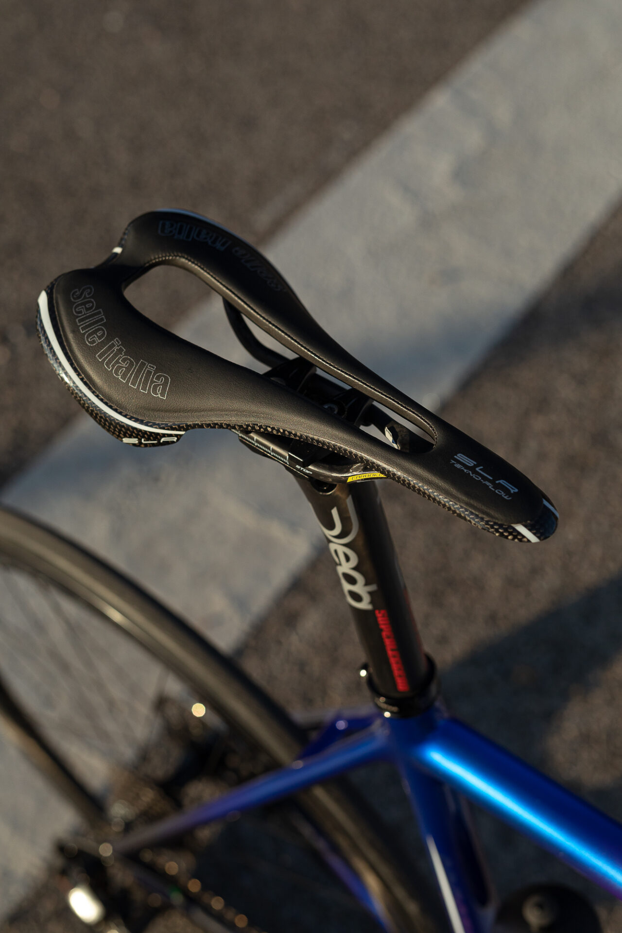 As mentioned earlier, Festka has achieved tremendous lateral stiffness which, added to completely straight seat stays, feels like riding a rigid block, such would be the case of track bikes, but extremely comfortable at the same time. Even though this might seem impossible, the frame is capable of achieving that. The components that equip this bicycle are not ‘endurance’ at all. For instance, the Trentacincue cockpit is not precisely known for its flexibility, but the contrary. As well as the saddle/seat post ensemble (Deda and Selle Italia, respectively) which is very rigid too, not adding extra comfort. Therefore, all-terrain irregularities must be absorbed by the frame itself, which remains undoubtedly reactive at the same time. Science fiction maybe? No, science.