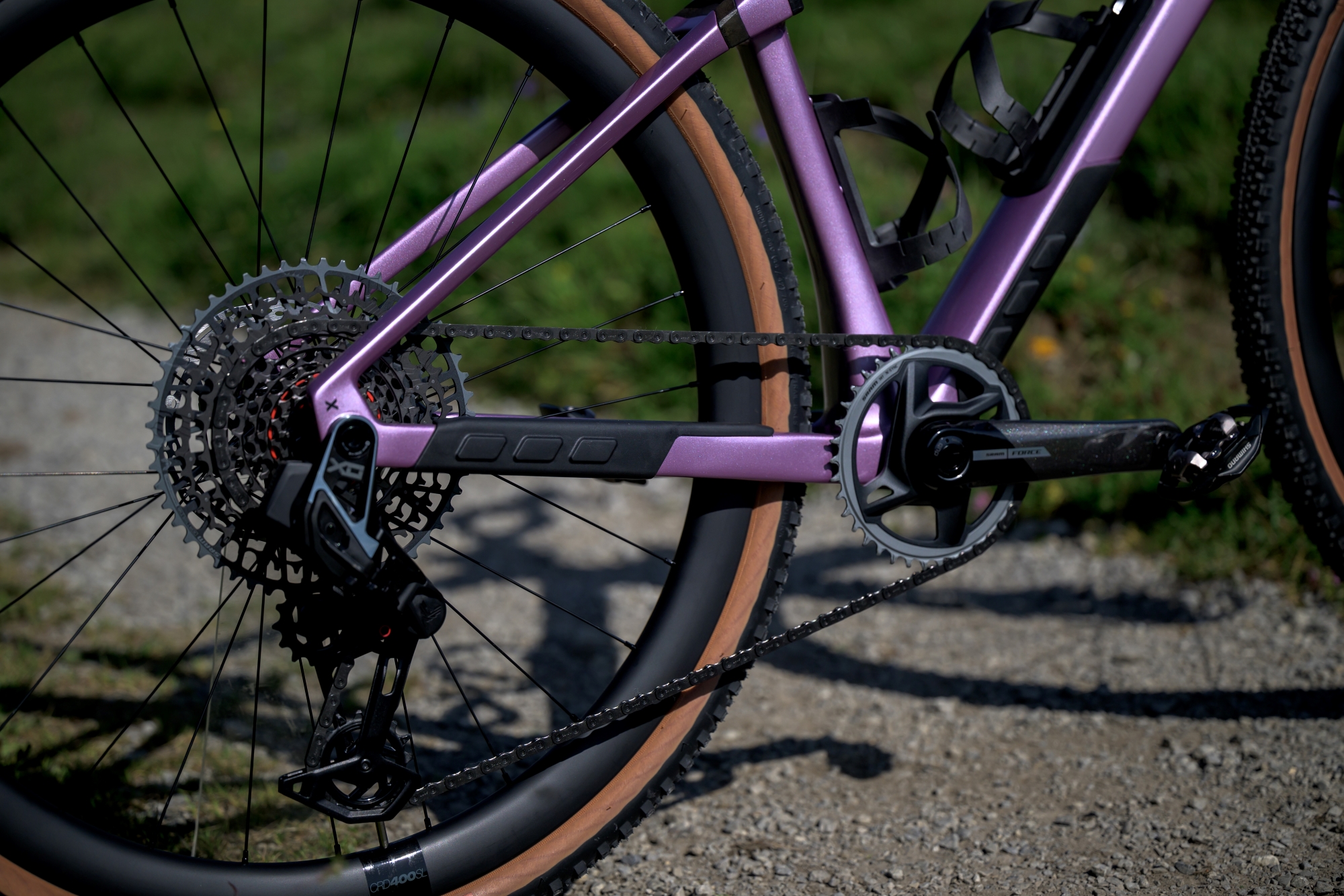 Even if all the models we tested and the options available on their website are spec’d with Sram transmission only, the URS is compatible with a 12-speed Shimano Di2 drivetrain and even mechanical drivetrains. Only 1x drivetrains are compatible with the URS frame, and the single chainring must be at most 42T. Also important to note that the new URS now features a Universal Derailleur Hanger.