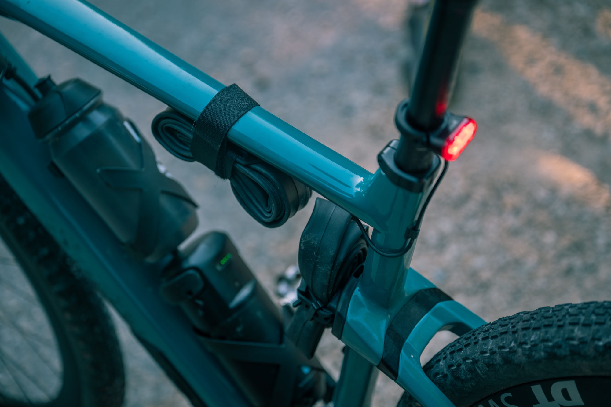 The battery takes over the space used by the downtube storage in the other members of the URS family, but the multiple bolts and the cargo strap allow for multiple configurations that make sure we can carry everything we may need.