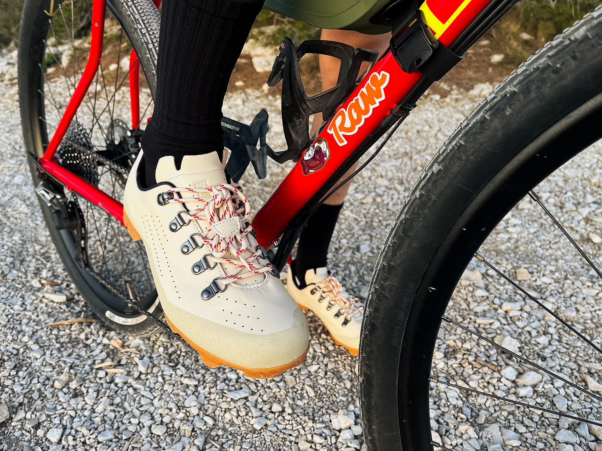 From our point of view, we really acknowledge the aspect of the shoes, but what we really like is the compromise between the stiff carbon sole combined with the rubber outsole and the leather top with laces. This makes this shoe very interesting for all these outdoor adventures but also for ultradistance bikepacking trips or races, even those mostly on the road. This comfort-to-performance design will accommodate your feet perfectly while providing an optimal power transfer in each pedal stroke.