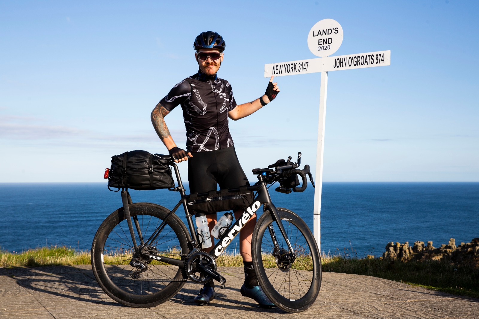 To honor the French Grand Tour, he wanted to ride the real route of the Tour de France, but when it became obvious that travel restrictions would be an impediment, he relied on his creative sense to plan something in the UK, and he came up with the idea of reaching the desired distance while hitting all the extreme points (north, south, east and west) in the island. Planning wasn’t easy, as he didn’t want to ride much more than 107 miles (around 172 km) each day but he had to finish each day in a place with accommodation available.