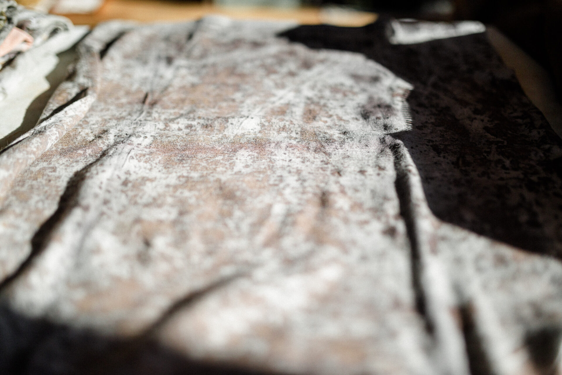 Thus, based on what she knew, she focused on the dyeing process. She went out into the woods and fields to recollect all kinds of plants, herbs, and leaves, to later use them in her workshop to create dyes and compositions on different natural fabrics. In this process, she found a way to herself and discovered her true passion. What used to be a game when she was a child was now what filled her spirit. In January 2017 she started MÃÄD, which stands for My Ancient Affairs Dyed, and symbolizes the reconnection with her young self.