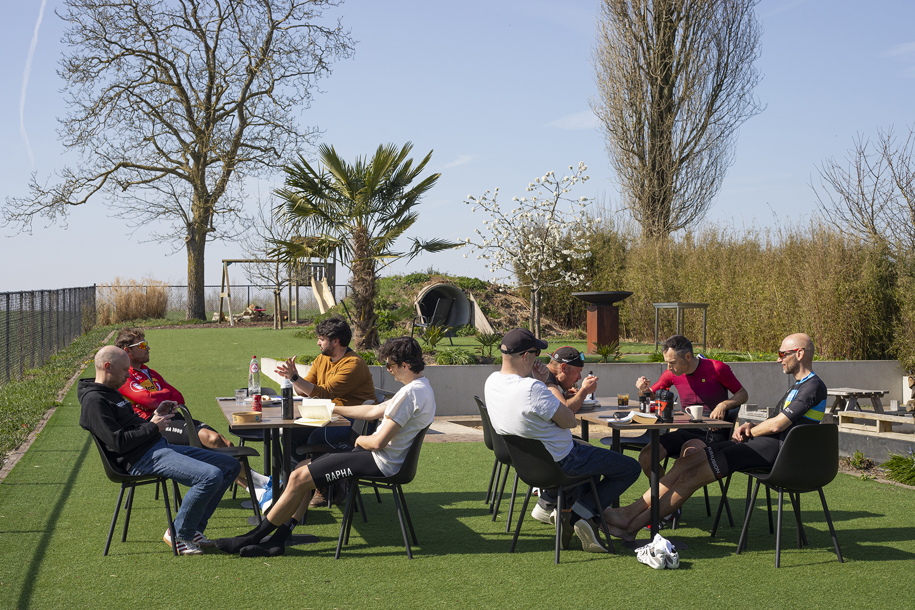 Oude Kwaremont y Paterberg fueron, como en el fin de semana de carrera, el centro de atención de cientos de ciclistas. Además de la carrera élite del domingo, la popular cicloturista se celebra cada año el día anterior, por lo que pudimos ver muchos grupos de aficionados allí, junto con algunos equipos profesionales masculinos y femeninos haciendo su reconocimiento. Los organizadores de la carrera y la policía ya controlaban el tráfico en los puntos clave del recorrido, a pesar de ser solo jueves, lo que demuestra lo popular que es toda la Semana Flamenca para los fans y la importancia que tiene la seguridad y la buena organización para los responsables del evento.