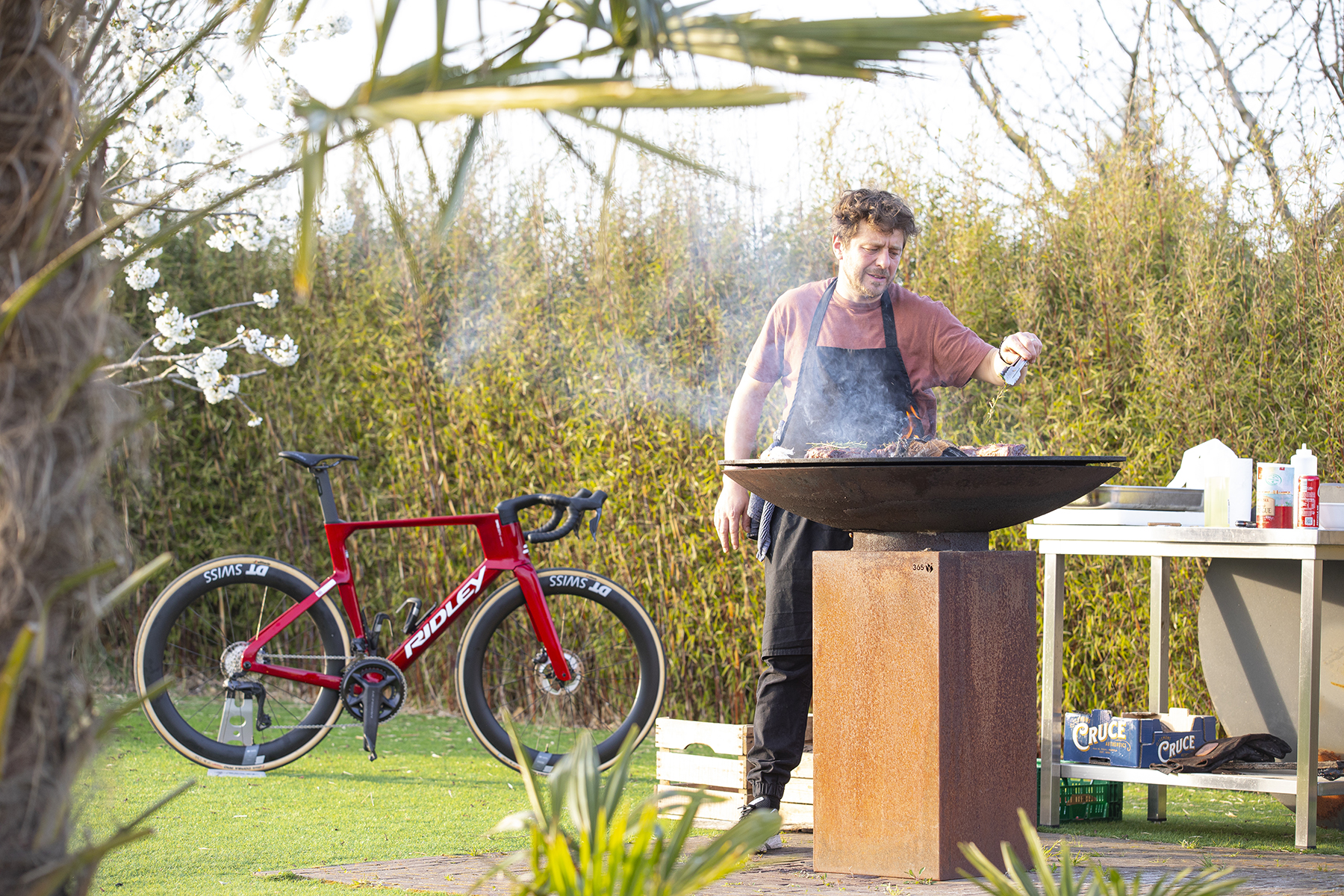 Vivir este festival ciclista en persona es probablemente algo a lo que ningún fanático de las clásicas diría que no. Así que nos alegramos cuando surgió la posibilidad, de parte de Ridley, de pasar dos días en Maarkedal, Flandes Occidental, justo en el corazón de la región donde se celebran las carreras. Nos alojamos en Villa Mareon, rebautizada como Villa Ridley, una casa espaciosa y lujosa que puede alojar cómodamente a un grupo de ciclistas que visitan la región para asistir a las carreras. De hecho, está ubicada directamente en el recorrido tanto del Tour de Flandes como de Dwars Door Vlaanderen.