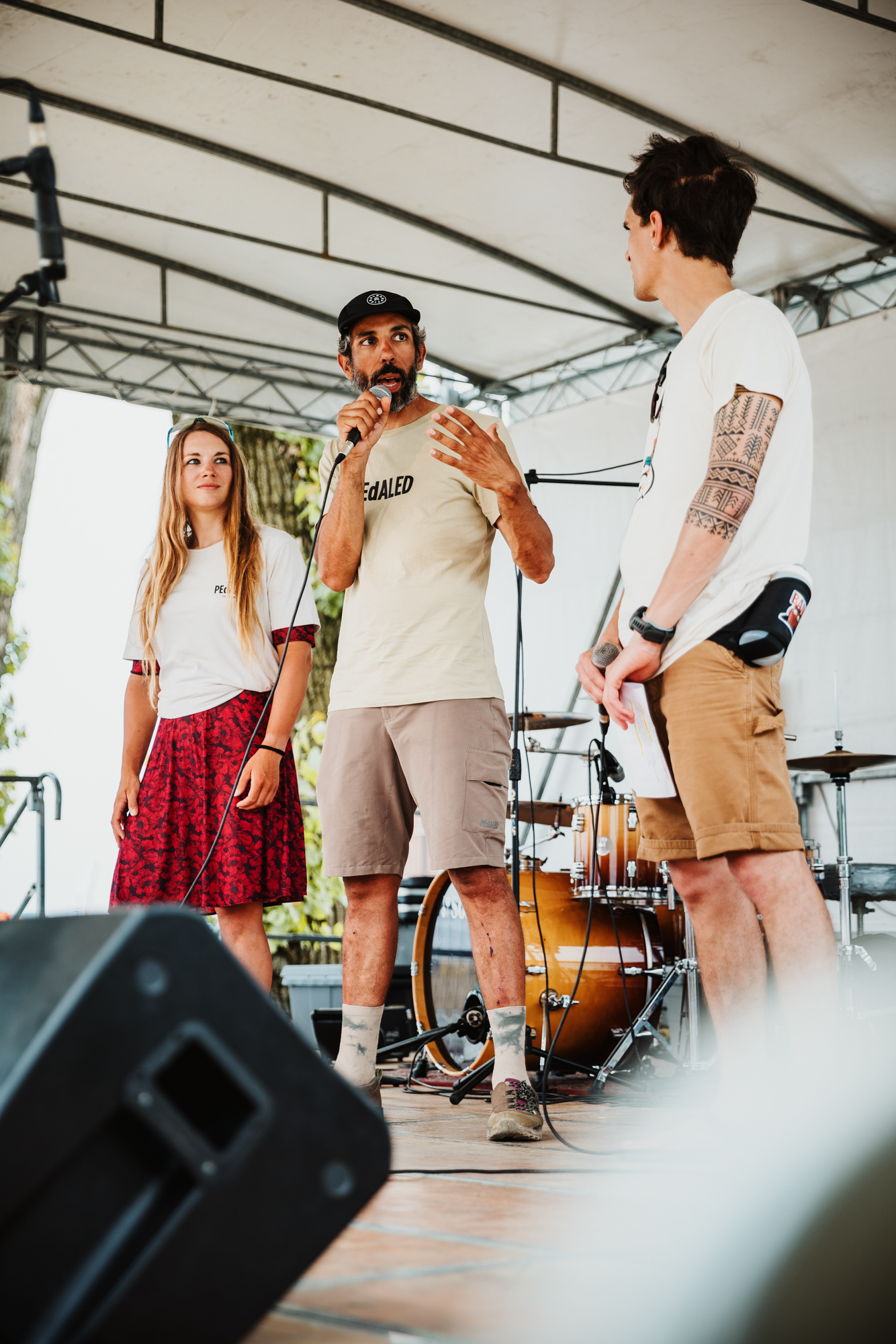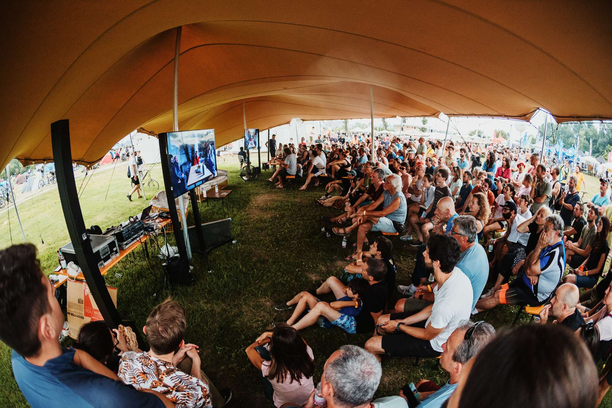 Nosotros, tres amigos lejanos, enamorados del sudor y del viento, partimos en febrero pasado hacia Sudamérica, hacia la Patagonia. La idea que tenía en mente y que inmediatamente compartí era simple: queríamos crear el primer documental de viajeros en bicicleta que contara historias, no hechos. Proyectar el film en BAM! era, sin duda, la prueba que necesitaba para ver si habíamos logrado el objetivo. Ver a más de cien personas sentadas atentamente durante aproximadamente una hora bajo la carpa instalada en Campo Canoa en Mantua fue realmente emocionante. Pero lo que fue aún más emocionante fue escuchar el generoso aplauso al final de la proyección. Inmediatamente le envié un mensaje de texto a Paolo mientras abrazaba a Willy, que estaba sentado a mi lado: “Fue maravilloso, Penni”, y él respondió con uno de sus tantos gifs divertidos en WhatsApp. Sonreí, pero sabía que él estaba esperando leer esto de mí en su corazón: “El año que viene, tú también tienes que estar aquí; ¡El año que viene nos vemos todos en BAM!”