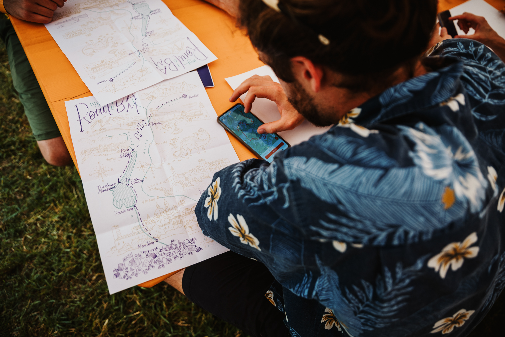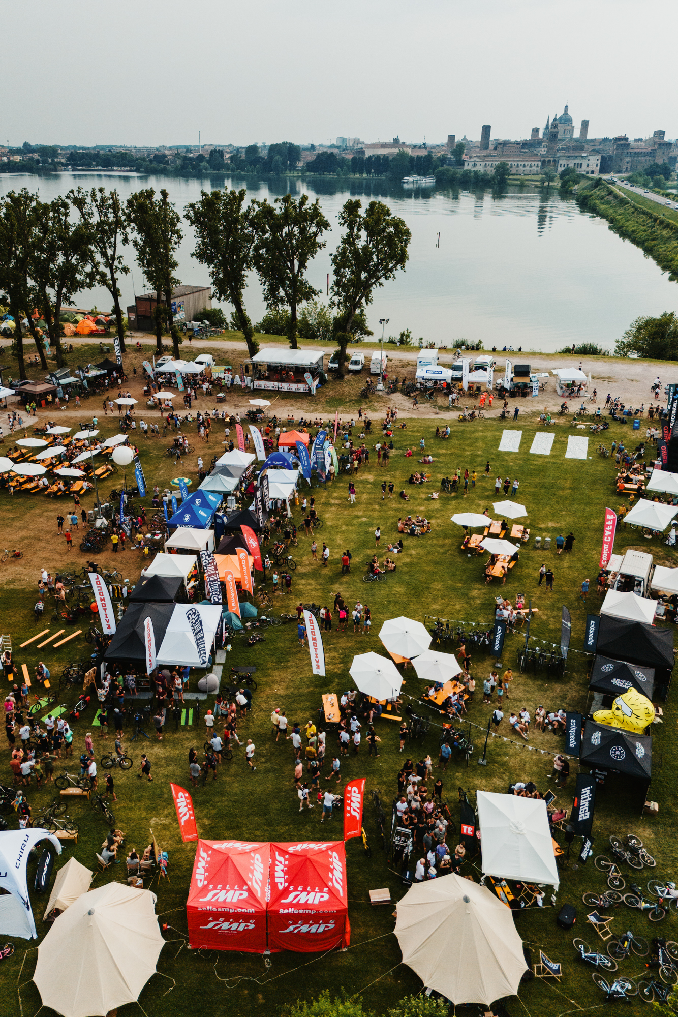 Estaba preparando el guión de la el programa en directo cuando uno de mis editores me habló de este evento, festival, y/o encuentro que se celebraría en Mantua, Italia. “Una gran reunión de viajeros en bici”, me dijo. Mi atención, totalmente centrada en la elección de la música, fue captada inmediatamente por esa frase: “…viajeros en bicicleta”. Deejayontheroad, mi programa de radio en Radio Deejay (una de las cadenas de radio más importantes en Italia), es perfecto para este tipo de contenido ya que nuestro objetivo es contar historias de gente que han decidido cambiar su forma de ver la vida y viajar. Mi trabajo es escuchar y relatar esas aventuras. Qué oportunidad tan perfecta, pensé. Enviamos un correo electrónico a la cuenta oficial del evento. En pocas horas conseguimos concertar una llamada telefónica con Andrea Benesso, una de las dos mentes brillantes detrás de BAM! (Bicycle Adventure Meeting), junto a Eleonora Bujatti. “¡Nos vemos en Mantua!” dijo al final de nuestra charla, haciendo mención al lugar elegido para llevar a cabo el evento.