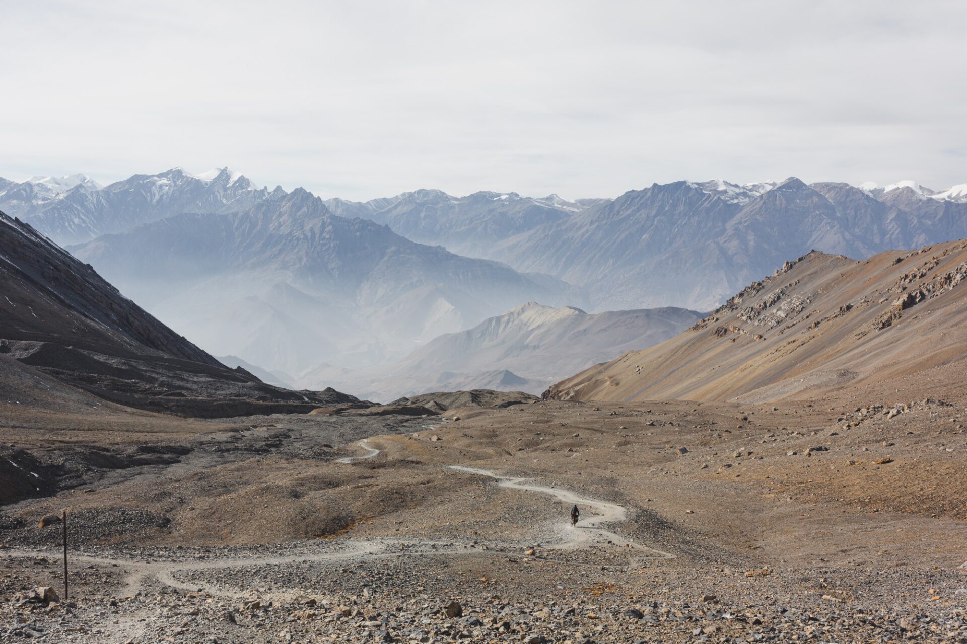 El punto más alto del circuito y probablemente lo más memorable del viaje fue cruzar el paso de Thorong La a 5.400 m seguido por un descenso de 1.200 m hasta el pueblo de Muktinath. Coronar el paso fue una hazaña difícil, pero una vez arriba, la otra ladera no es más fácil. El descenso es muy duro y el camino complicado.