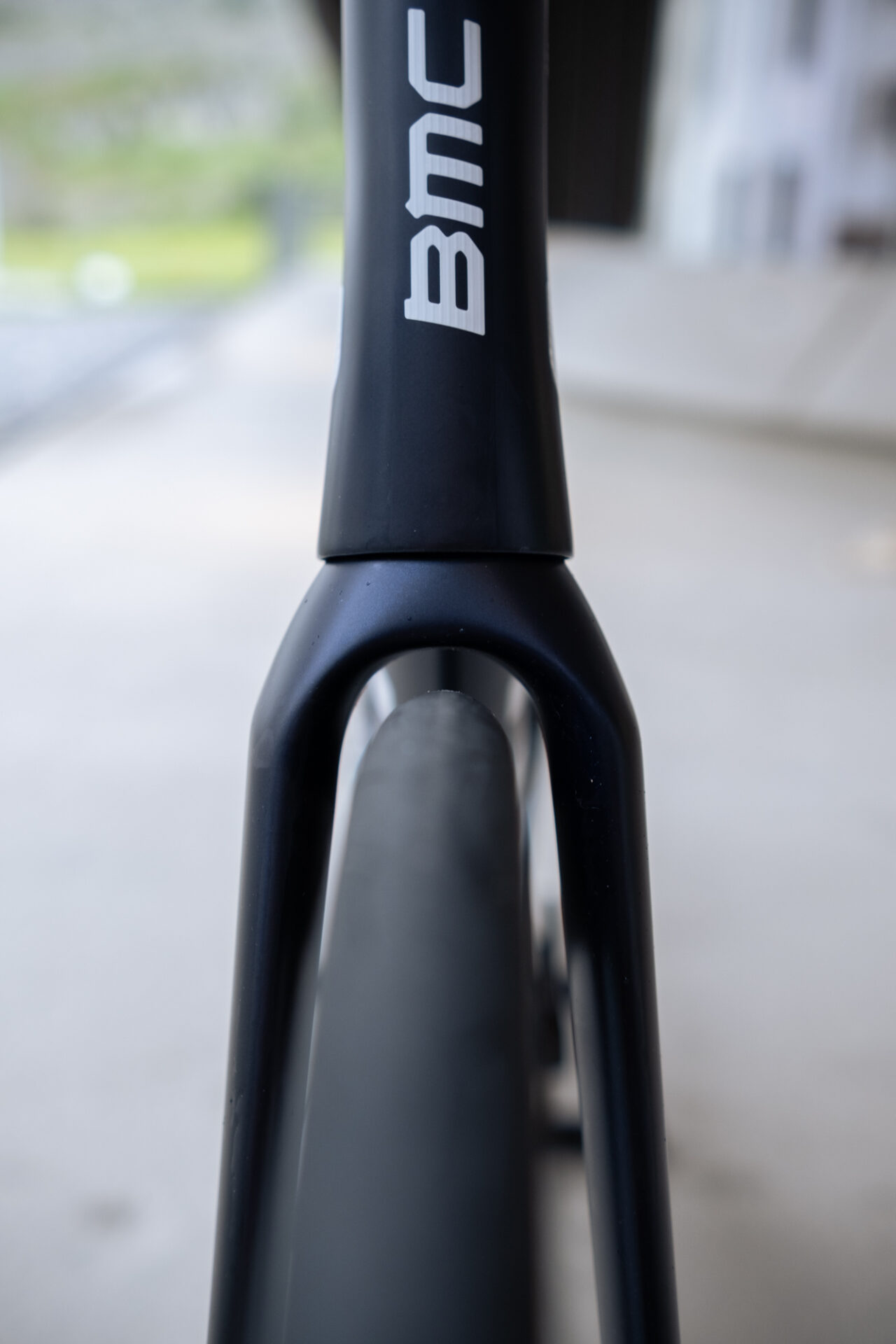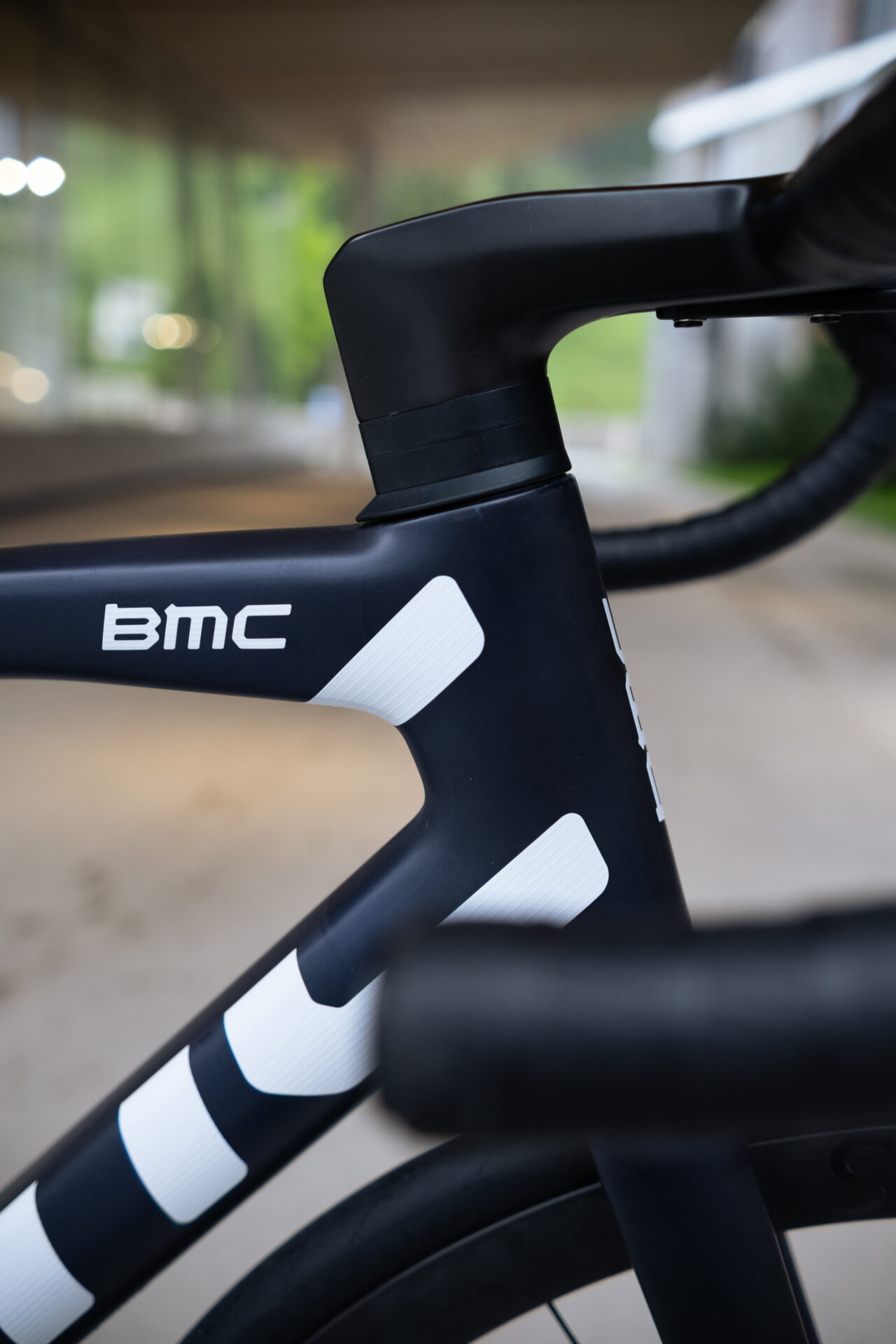 Sin dejar de lado los aspectos de diseño y estéticos, en esta generación BMC innova con un diseño sin pintura (se puede apreciar el carbono) y una decoración con un logo redimensionado que ocupa una parte importante del cuadro. Dese luego, este es uno de los puntos que más discusión puede generar pero, os podemos garantizar que en el momento que pruebas la bici, la decoración pasa a un segundo plano.