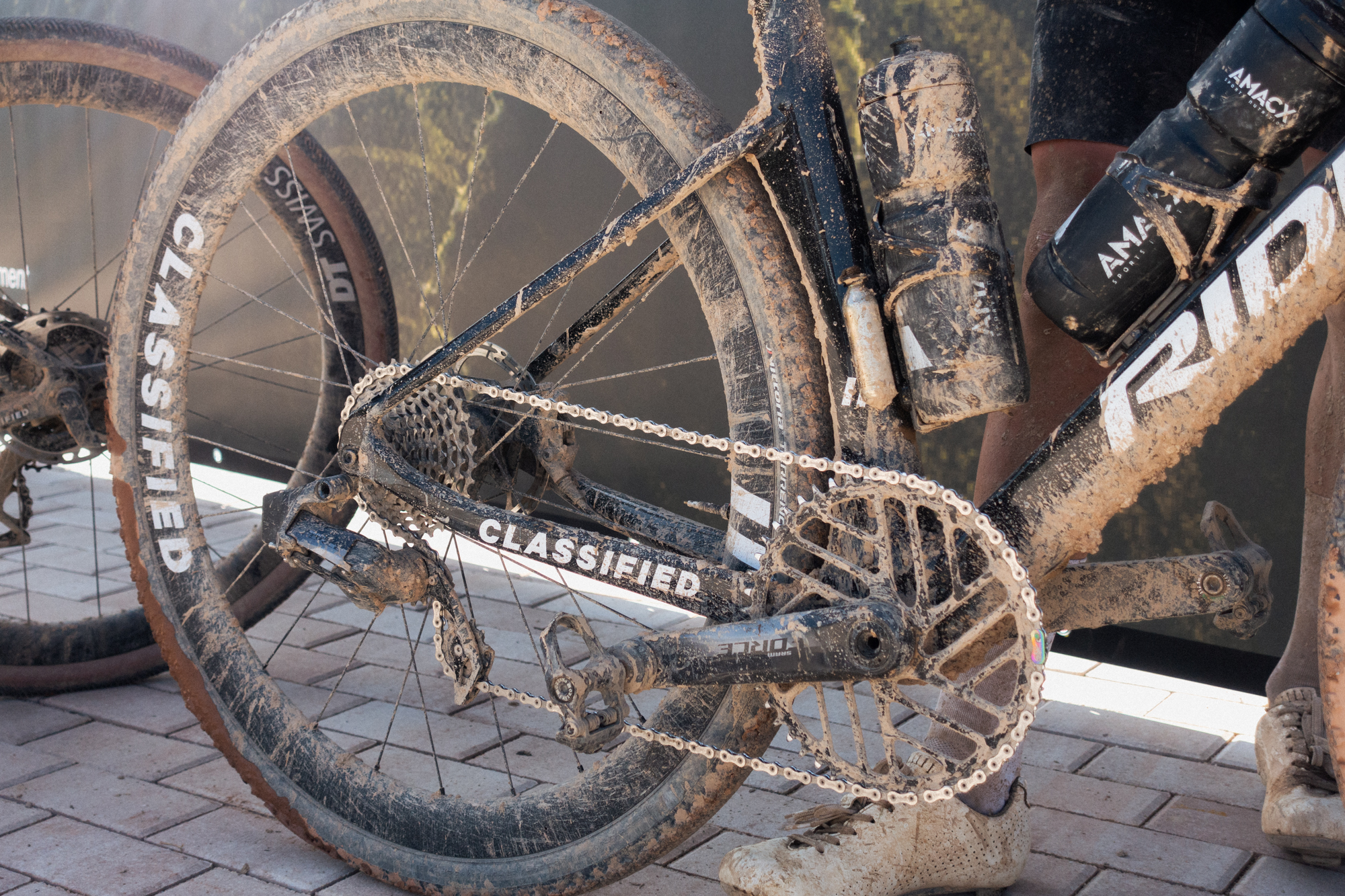 Su arma elegida para la segunda parte del año ha sido una Ridley Kanzo Fast equipada con el sistema Powershift de Classified. Montó un plato de 50 dientes por lo que el factor de conversión del sistema le permitió gozar de un plato pequeño virtual de 34. Ese día los corredores acumularon +3.500 metros de desnivel en 180 kilómetros, por lo que una amplia gama de marchas fue más que bienvenida. Él y Piotr Havik, los dos miembros actuales del equipo Classified, mencionaron la ventaja que tuvieron en Cardona al poder cambiar de marcha bajo carga cada vez que se encontraban con una rampa inesperadamente empinada.