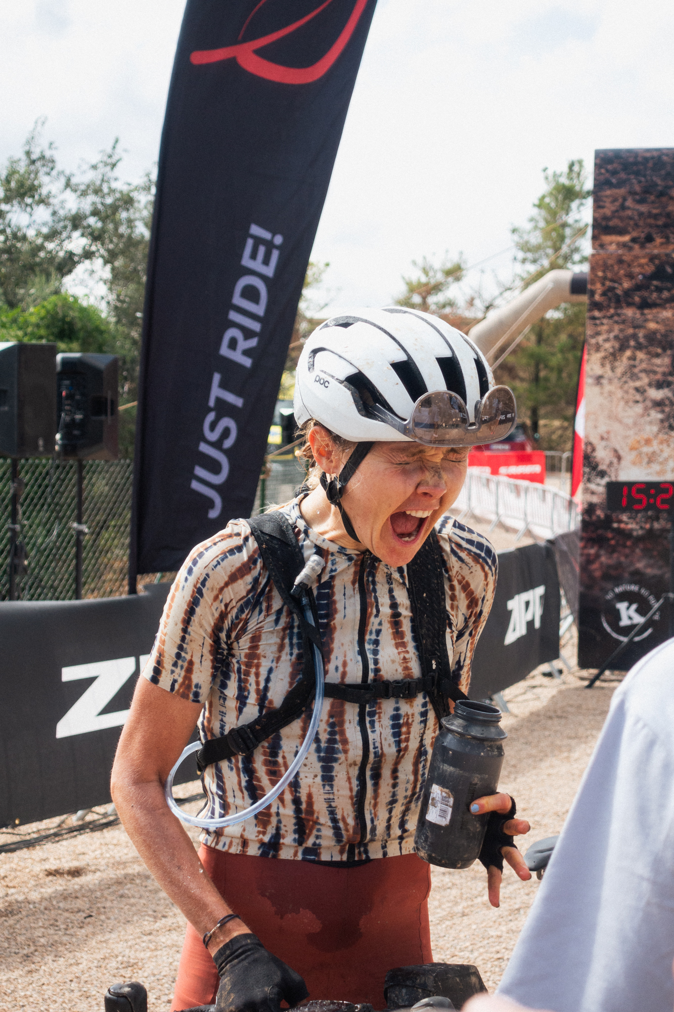 Cuando el speaker gritó que la primera corredora estaba en camino a la meta, rápidamente fuimos allí y vimos su emotiva llegada. Annabel Fisher no sólo ganaría la carrera en Cardona sino toda la Gravel Earth Series, ya que la líder antes de la carrera final, Amity Rockwell, no sumó los puntos que necesitaba para asegurar la victoria general.