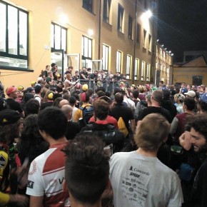 La carrera se llevó a cabo por el centro de la ciudad milanesa. Nos la tomamos con calma para aprovechar y conocer la ciudad, rodábamos en un grupo con varios mensajeros. Y pasada una hora volvíamos al velódromo para empezar la fiesta de bienvenida.