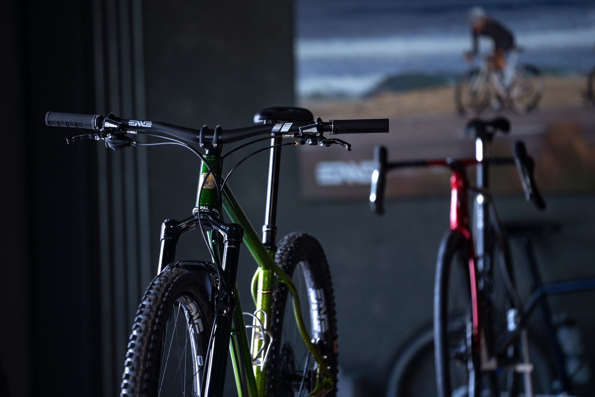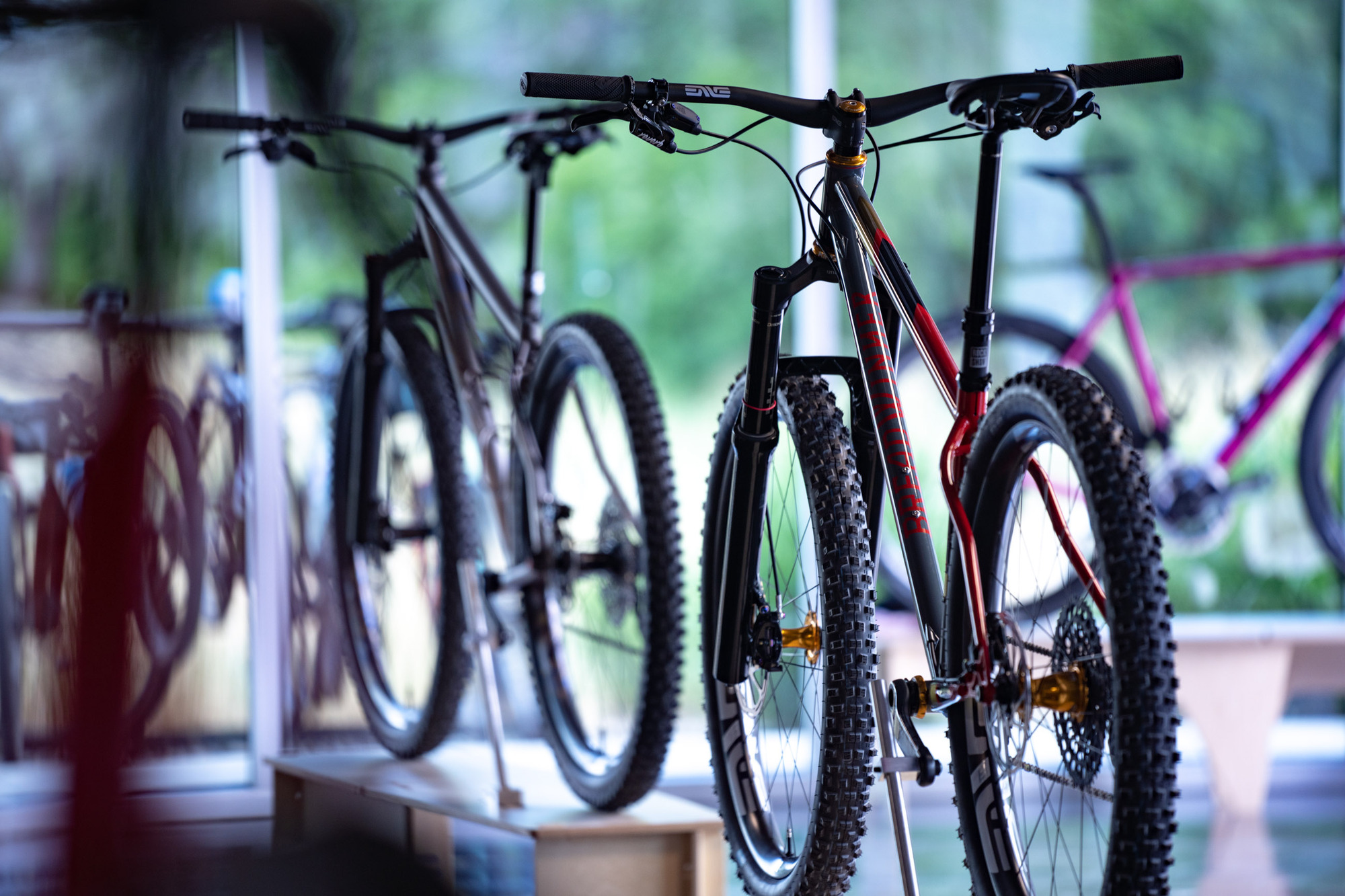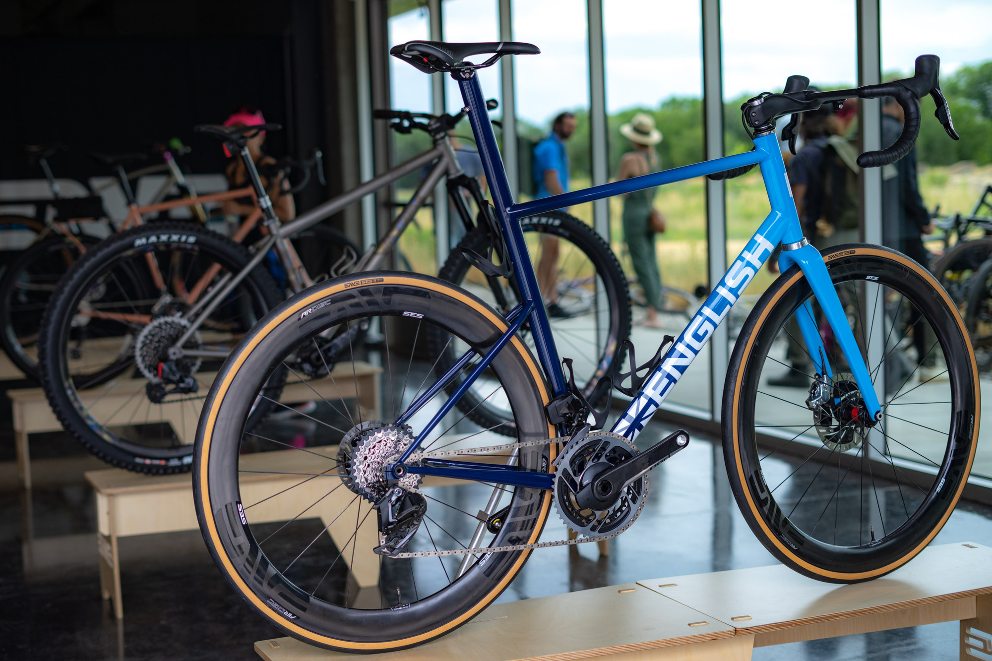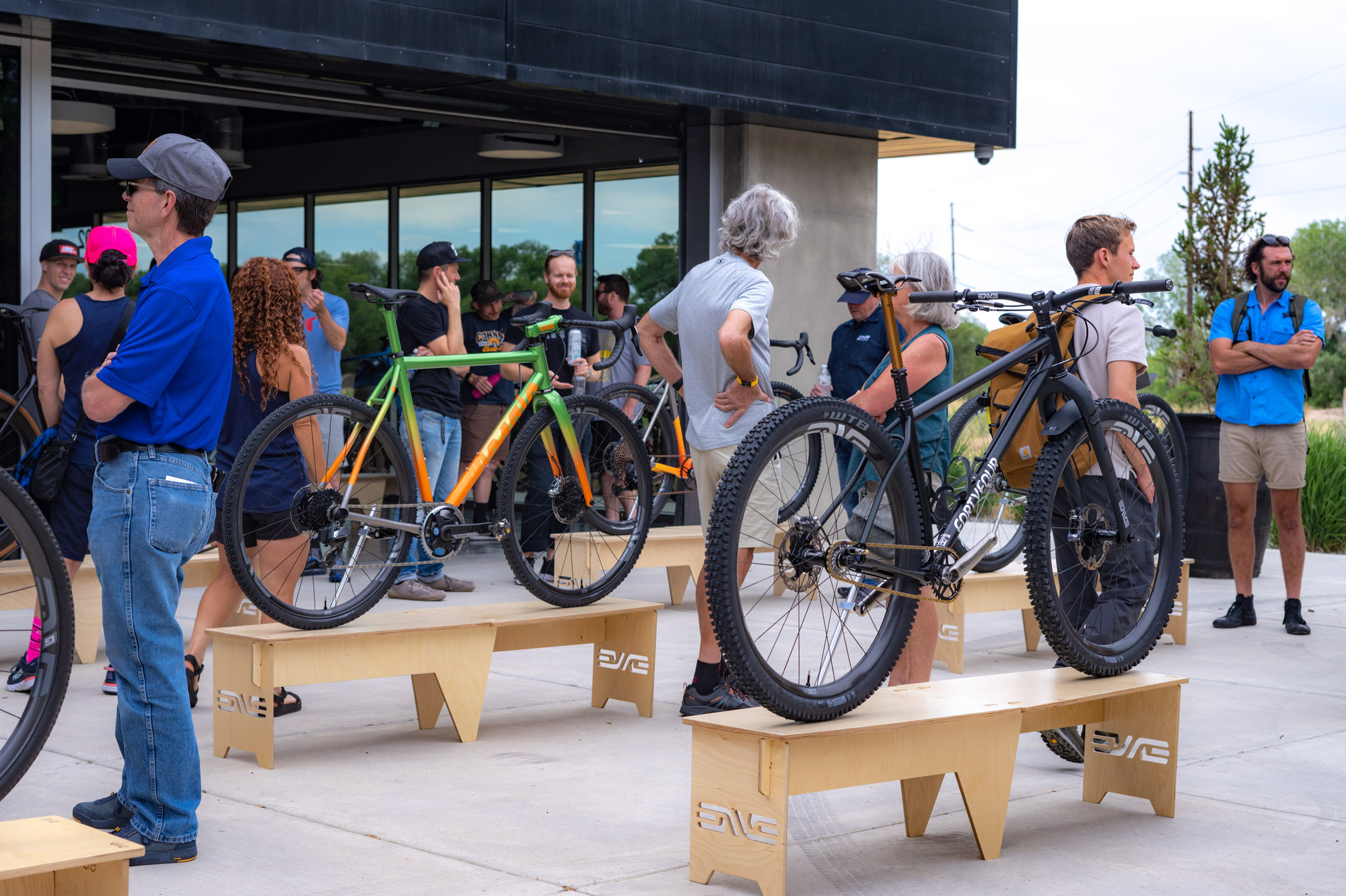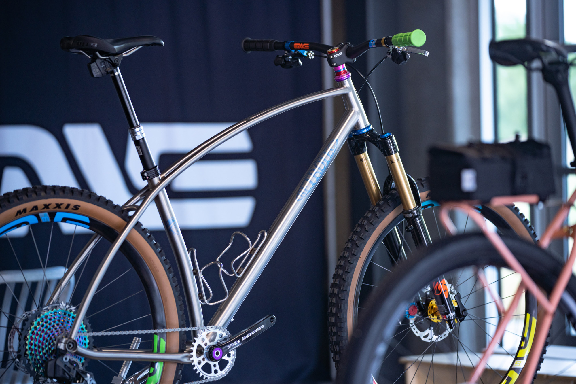 Un total de 35 bicicletas totalmente diseñadas y fabricadas por los artesanos invitados se mostraron en la ENVE’s Open House del viernes, como si de un mini NAHBS se tratase. El evento permitió exhibir sus últimas creaciones, ya fuesen bicicletas de carretera, gravel o de montaña fabricadas en acero, aluminio, titanio o carbono.