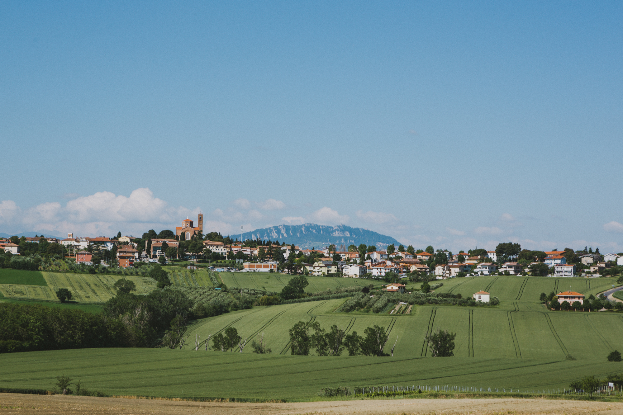 A shorter route option that we explored the following day, leaving Cattolica through a flat part, then steadily climbing up to San Giovanni in Marignano, and then to Mondaino, both very picturesque historic villages. The latter one is famous for its Fossa cheese production.