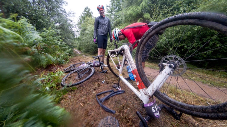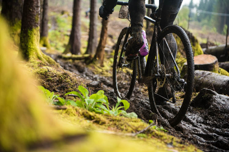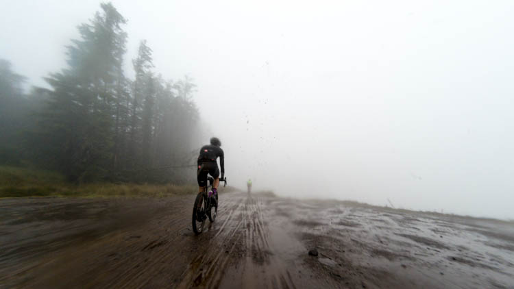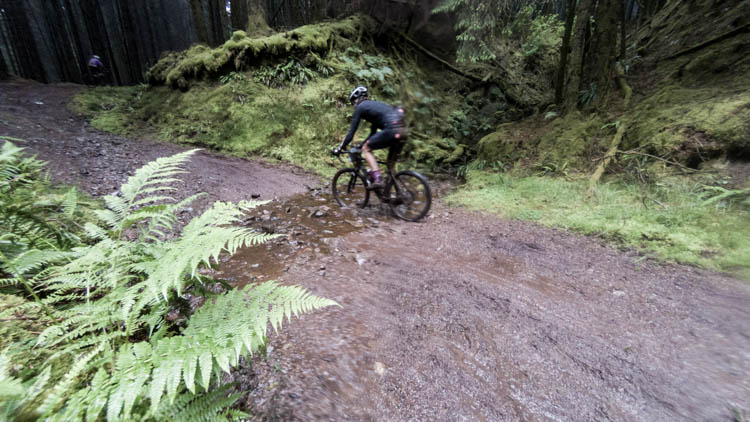 La dureza la puso el barro. Llovía mucho, pero por suerte para nosotros no hacia demasiado frio. Además, acertamos con las ruedas 3T 650 y cubiertas 2.0 tubeless de Wilderness con mucho taco. Abandonos ha habido pocos ya que al haber zonas neutralizadas los tiempos de corte son más que asumibles para cualquier persona que haya pedaleado alguna vez en su vida, así que los abandonos se debían más a problemas mecánicos que no físicos. Ya sabéis que el barro hace trizas cualquier bicicleta, y aunque había varios puntos de reparación mecánica hay cosas que son insalvables. El track debía ser duro a juzgar por la cara de los demás participantes ja, ja, ja, pero a mí me pareció tan bonito que no me enteré demasiado de la dureza. Los tramos neutralizados te dan mucha vida y da tiempo de recuperarte. Al final yo estuve “compitiendo” unos 30 minutos… así que no es nada descabellado.