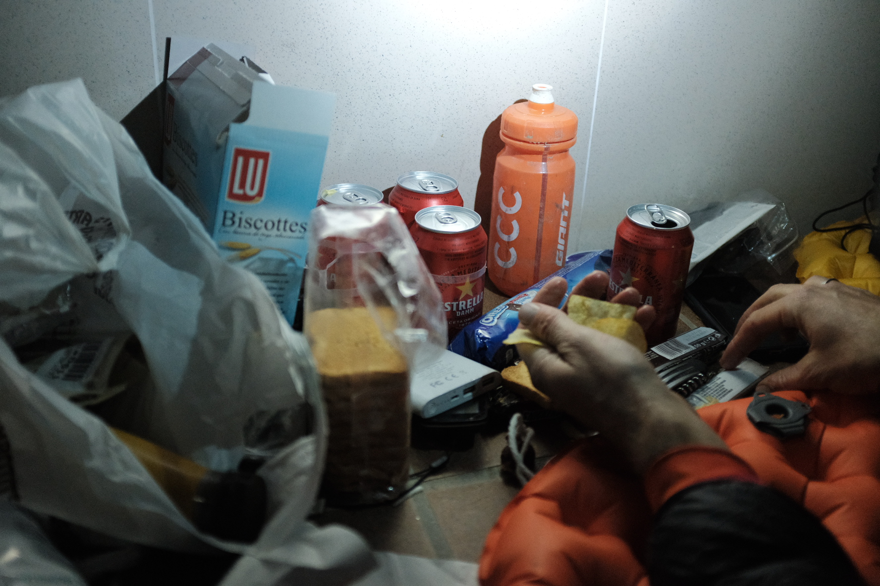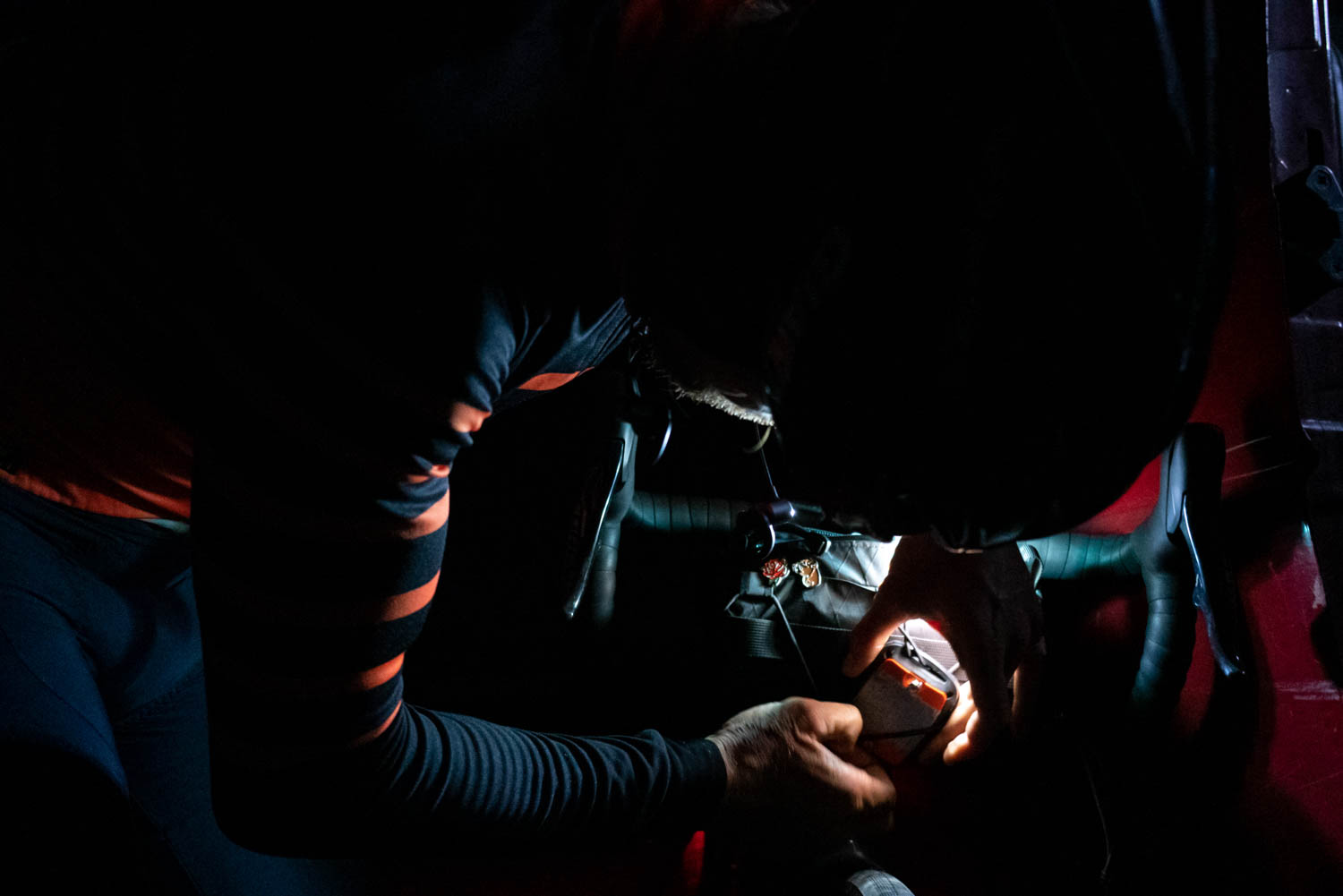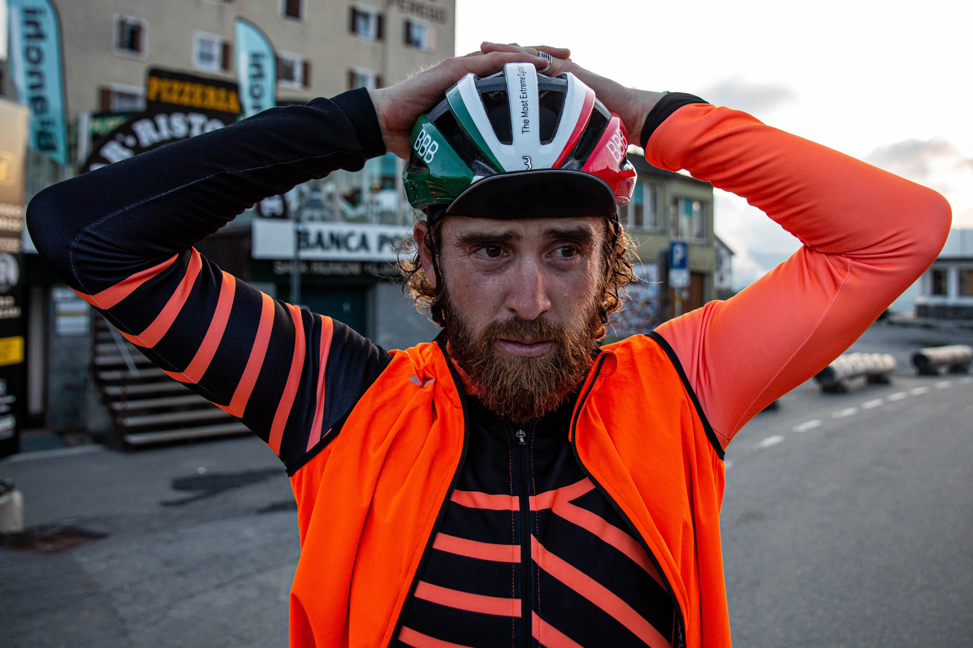 El primer día no tomó suficiente cafeína y literalmente cayó dormido, pero con una breve y recuperadora siesta fue capaz de continuar. Ese no fue el único contratiempo, ya que el coche de apoyo tuvo varios problemas mecánicos que crearon una cierta incerteza. Para culminar el registro de desgracias, la batería del sistema electrónico de su bicicleta se quedó sin batería a 30 km de llegar, con mucho desnivel aún por superar, así que las horas finales del desafío no fueron demasiado agradables.