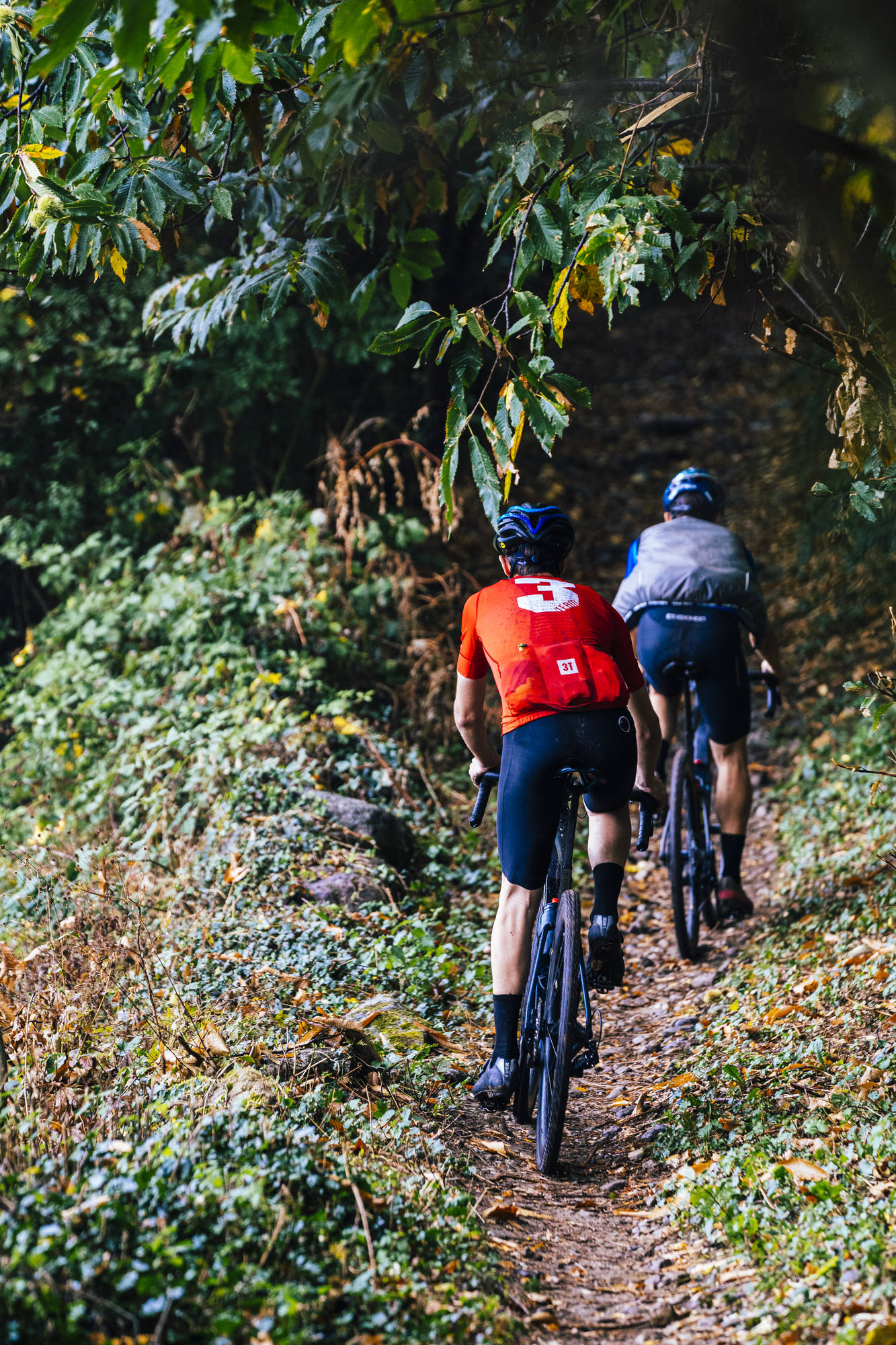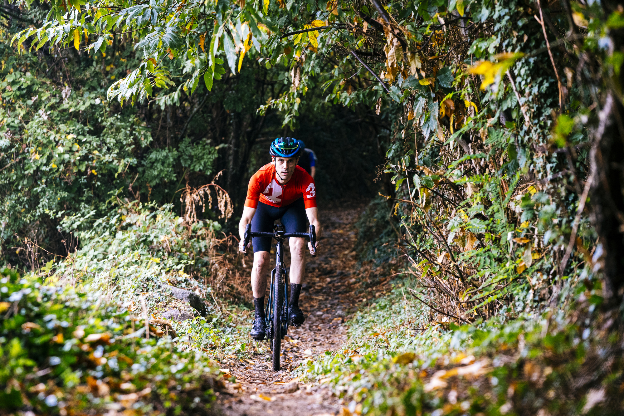 Ya habíamos recorrido los primeros 50 km y las piernas empezaban a sentir el esfuerzo al intentar mantener un ritmo alto. Ya que aunque no íbamos en cabeza, queríamos recuperar posiciones. Tras un descenso y empalmar con una carretera ancha, empezamos a subir de nuevo y nos tocó empujar la bici por la dificultad e inclinación del terreno. El día se caracterizó por este terreno cambiante que no era fácil y contaba con pendientes exigentes.