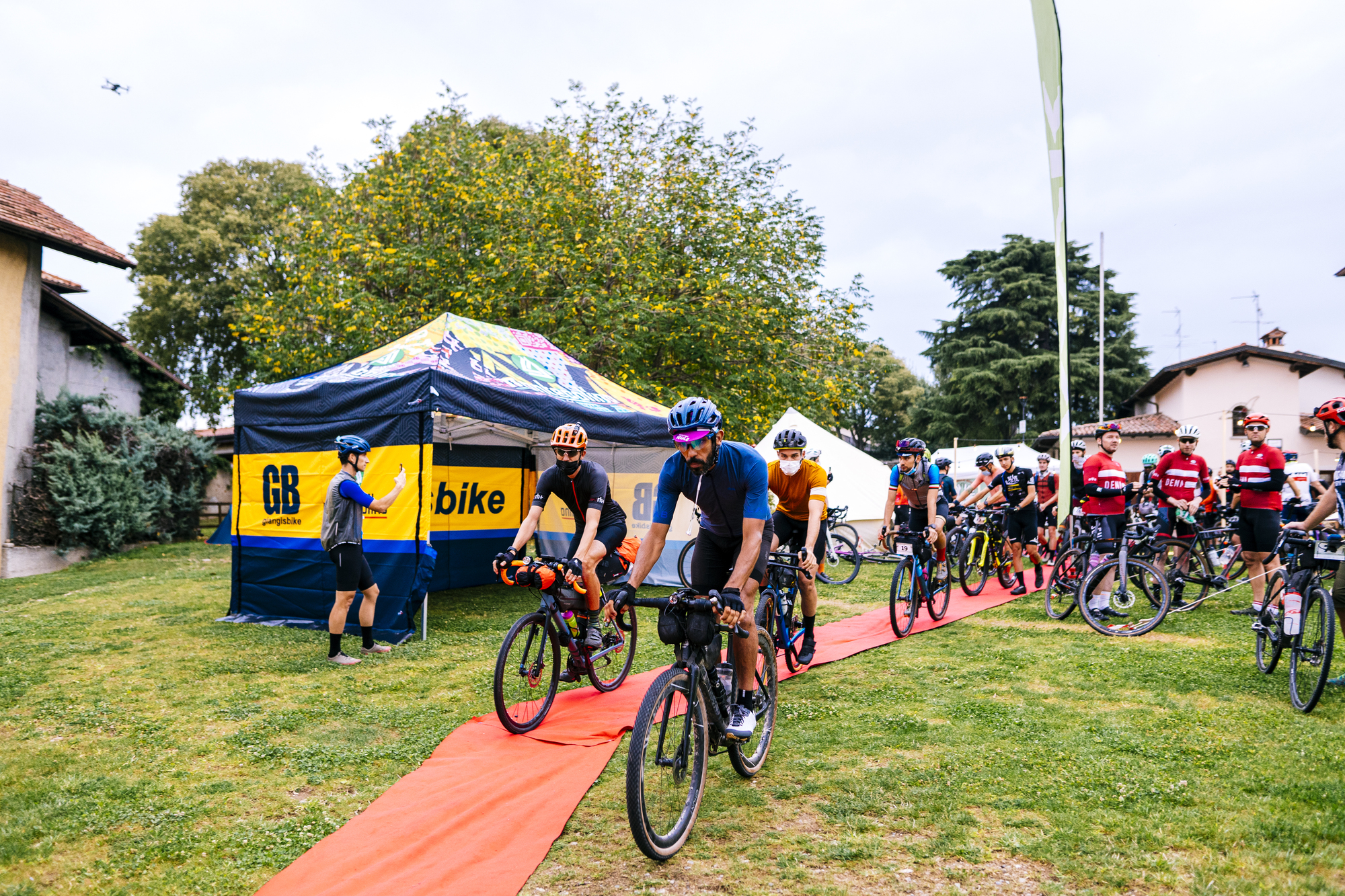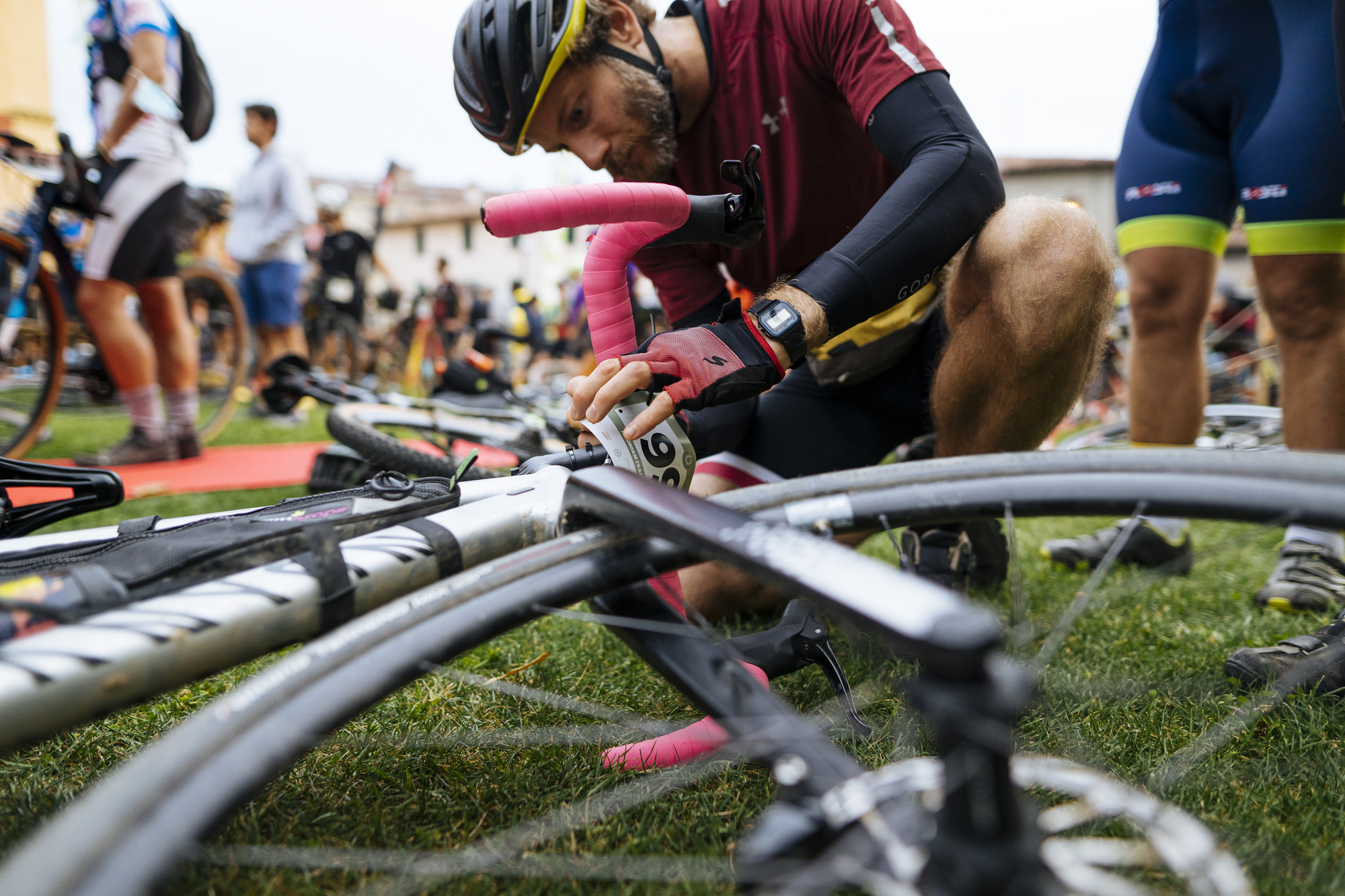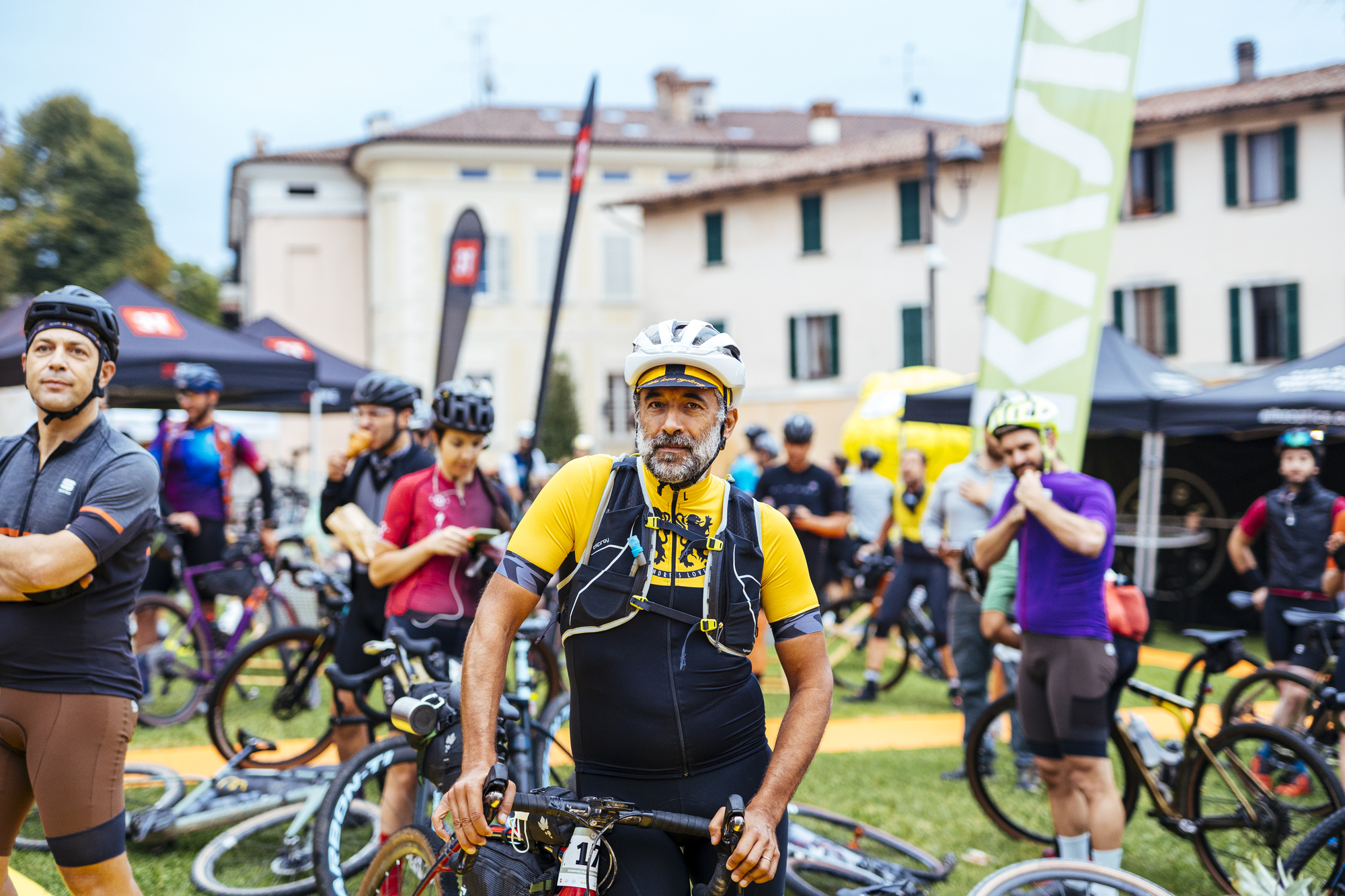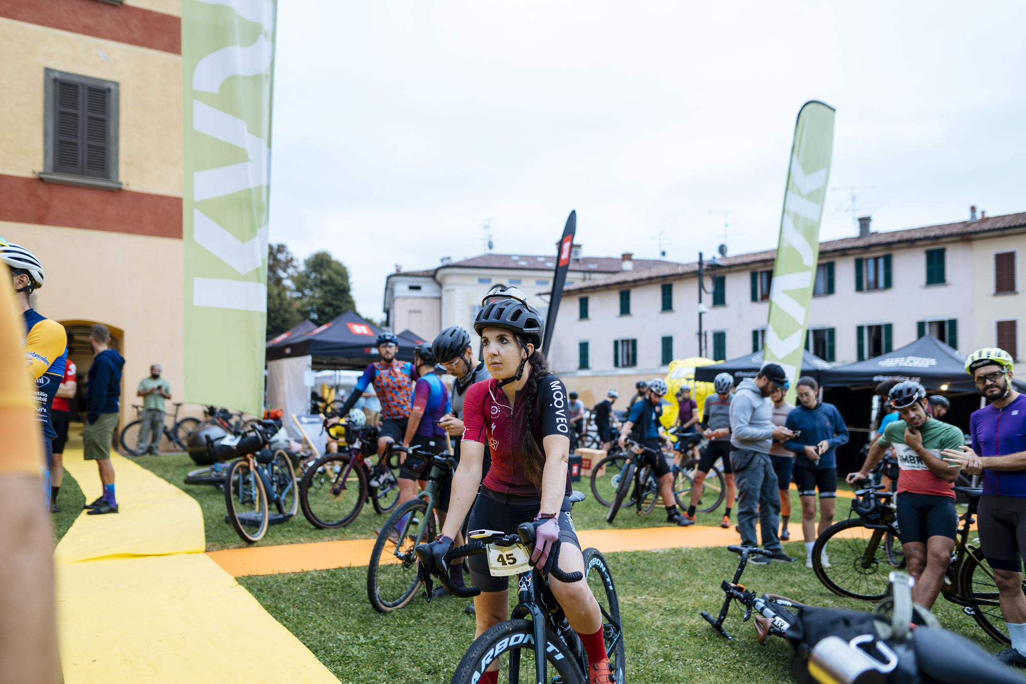 Participamos en la edición de Franciacorta 2021, con base en el pueblo italiano de Erbosco. No se trata simplemente de una carrera, sino todo un festival alrededor del gravel. De este modo, el viernes, al ir a buscar los dorsales pudimos pasear por los stands de sponsors, la zona para los corredores y visitantes, y participar en alguna entrevista antes de la cena previa a la carrera.