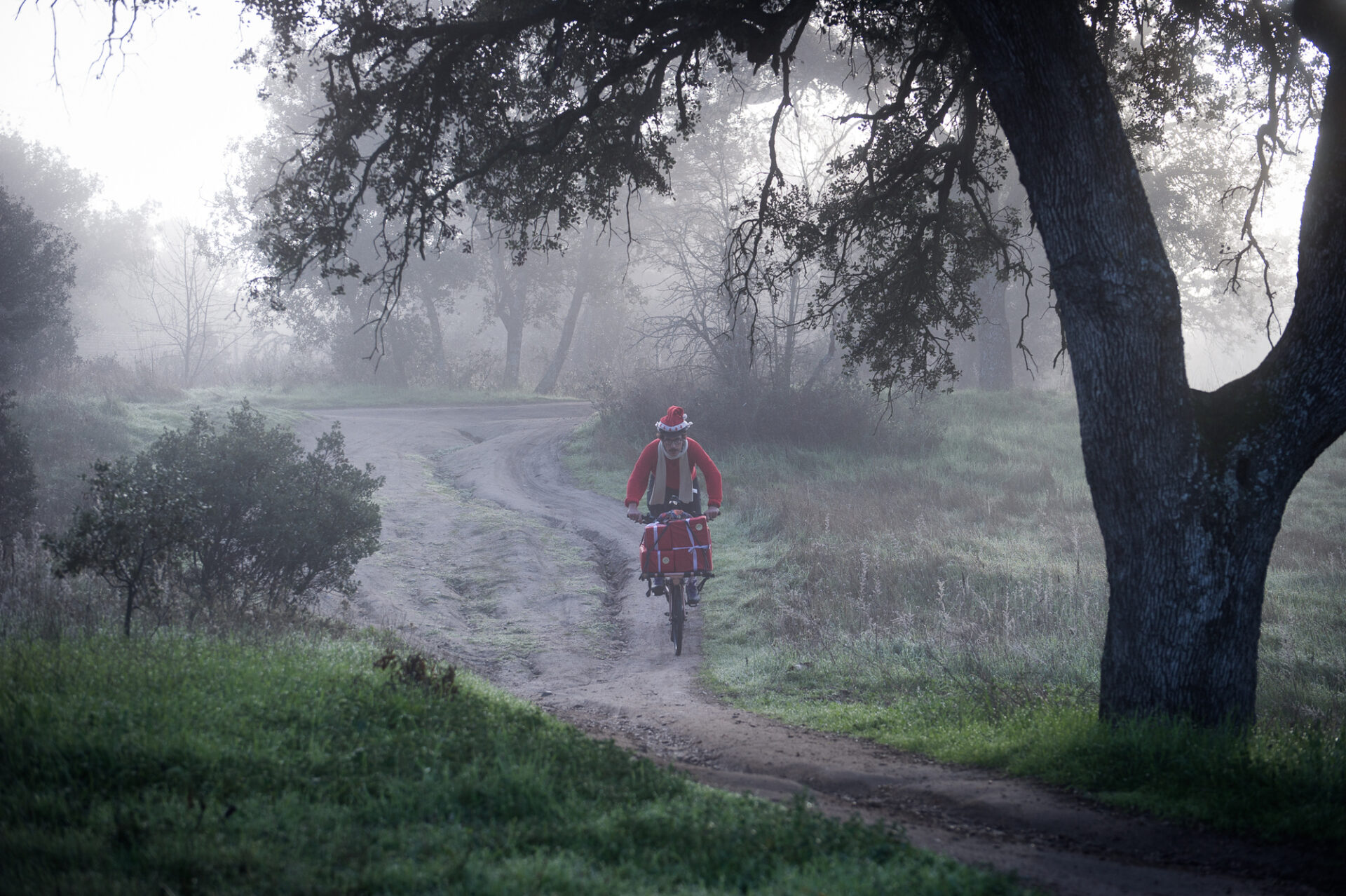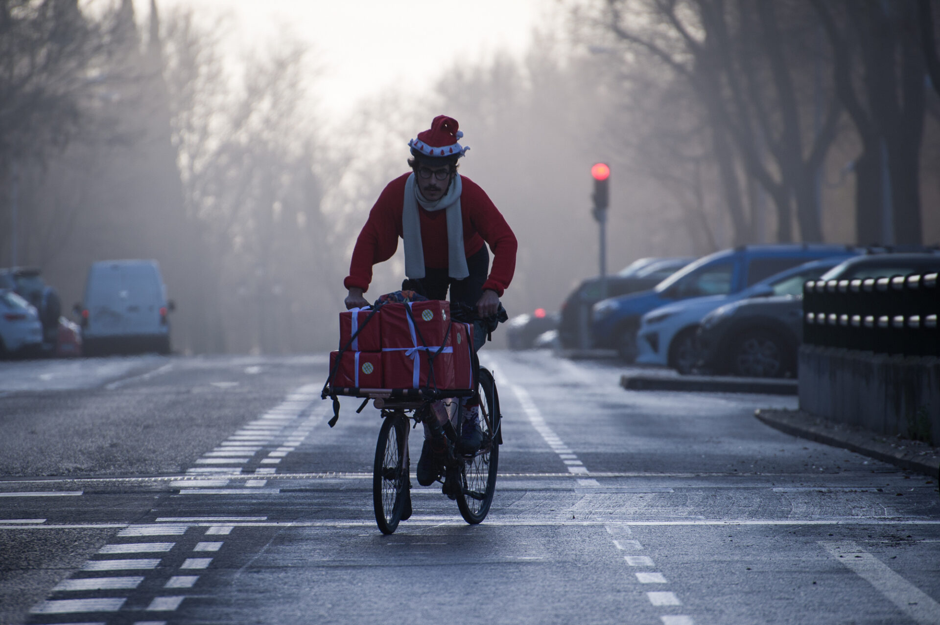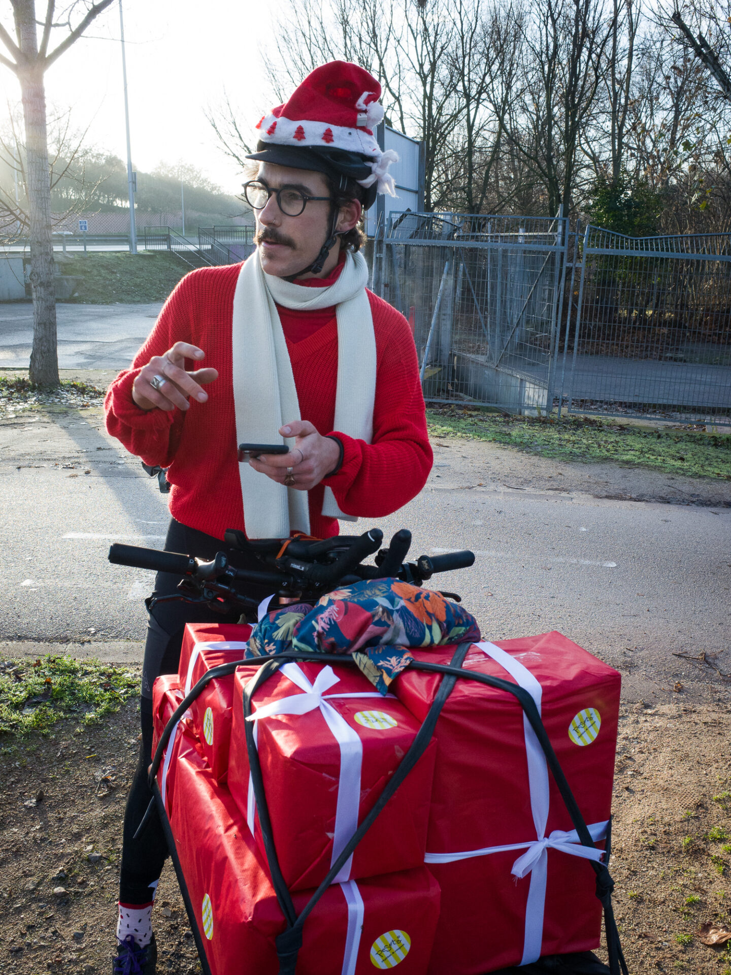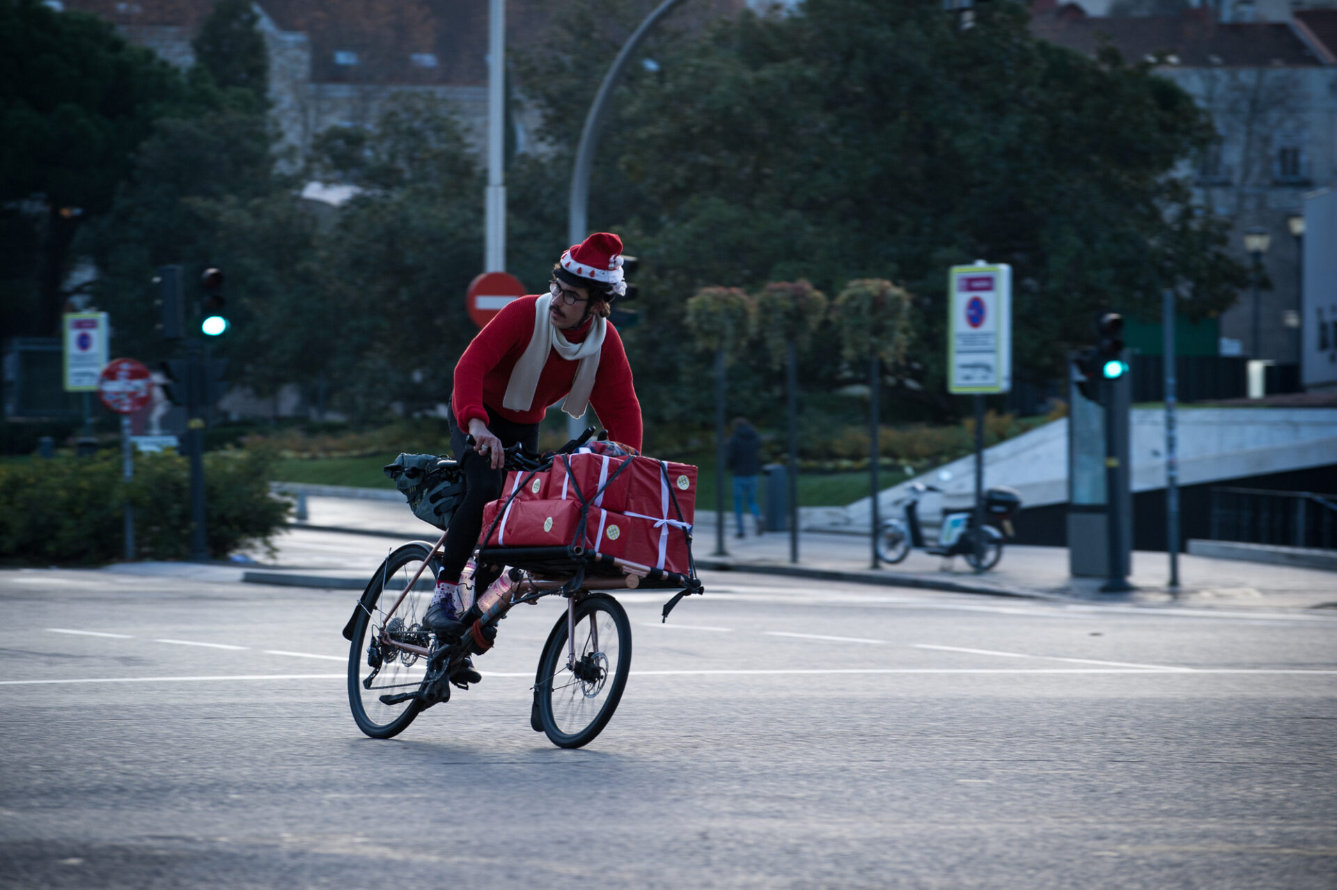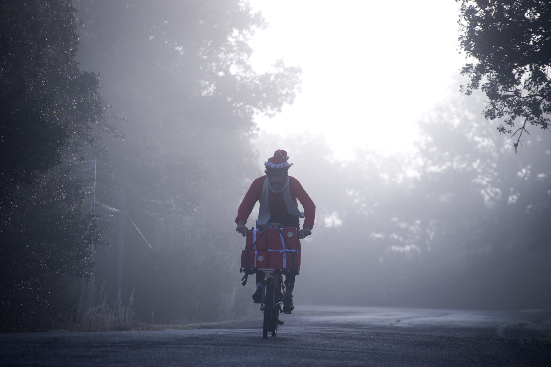 Las vacaciones de Navidad se caracterizan por reuniones con familiares y amigos, comidas infinitas, e intercambio de regalos. Para que esto suceda, en muchos casos es necesario que otros se encarguen de transportarlos a su destino, haciendo de Papá Noel a pequeña escala. Así, Jimbo, con la finalidad de entregar unos pedidos y dar visibilidad a las bicicletas de carga (cargobike) como un medio de transporte sostenible, se propuso hacer un servicio 24h-exprés de bicimensajería desde Madrid a Murcia cubriendo 350 km en menos de 17 horas para que todo el mundo tuviera sus regalos en Nochebuena.