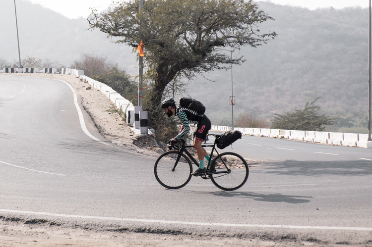 En India la historia fue diferente. No hay para nada una cultura de la bici establecida, y mucho menos de fixed gear. Allí me encontraba yo solo en la carretera, llevando conmigo todo mi equipaje ligero a lo largo de etapas que iban entre los 125 hasta los 265 km. Debido a las duras condiciones de las carreteras indias el máximo de etapas que llegué a hacer consecutivas nunca pasaba de 2 o 3 días. Normalmente después de una etapa larga y exigente me veía obligado a descansar un par de días aprovechando para explorar los alrededores. A este ritmo conseguí recorrer una distancia total de 5.000 kilómetros.