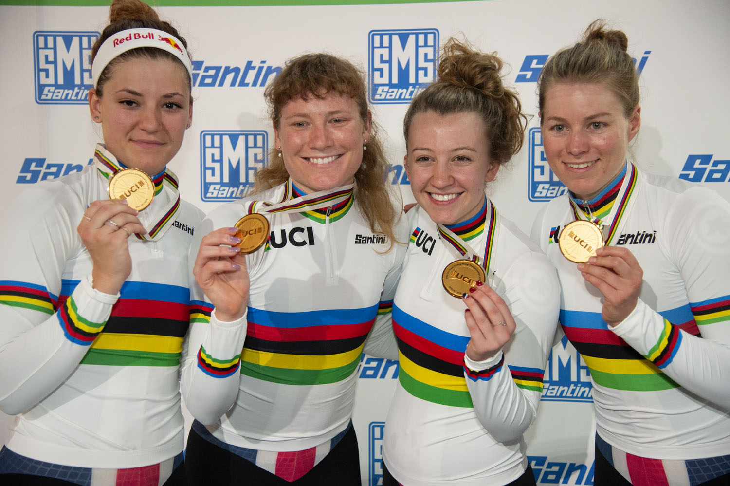 A lo largo de 2019 estuve yendo y viniendo del OTC para preparar los campeonatos de Berlín hasta que tuvimos un training camp muy intenso justo antes del mundial. Cuando llegamos a Berlín tuvimos 4 días para aclimatarnos al velodromo, ya que el nuestro es de 333 m y ese era obviamente de 250 m. Todas nos sentíamos muy bien, en buena forma, y estábamos cómodas entre nosotras. La competición estaba dividida en tres eventos: clasificatorias, primera ronda y finales. Durante la jornada, Gran Bretaña hizo un 4:11 como tiempo de clasificatoria. Eso fue poco antes de que saliéramos, de modo que no tuve tiempo para ponerme nerviosa. Hasta el momento, solo había corrido un 4:13 en Brisbane (Australia) y el equipo un 4:13 en Minsk (Bielorussia). El entrenador nos dio una ‘rutina’ igual a la de GB, creyó que lo podíamos hacer, y así fue, nos clasificamos con el tiempo más rápido del dia. Definitivamente, un extra de motivación. En la primera ronda, corrimos otro 4:11 contra Nueva Zelanda, y así llegamos a la final contra GB. Llegados a ese punto me sentía segura ya que las cuatro del equipo habíamos acabado la carrera anterior y corríamos consistentemente, aunque cualquier cosa podía pasar. En la final me sentí relajada y en control, era la cuarta del grupo y después de mi segundo turno delante me descolgué, pero ya sabía que íbamos a ganar. Estaba bajando del peralte y vi nuestros nombres en la pantalla con otro 4:11 en el bolsillo. Solamente cinco 4:11s habían sido realizados durante esos días y tres eran nuestros. Nos convertimos en campeonas del mundo. Ver a las compañeras y la gente que conocía ahí de pie aplaudiendo fue surrealista. Diría que uno de los mejores momentos de mi vida.