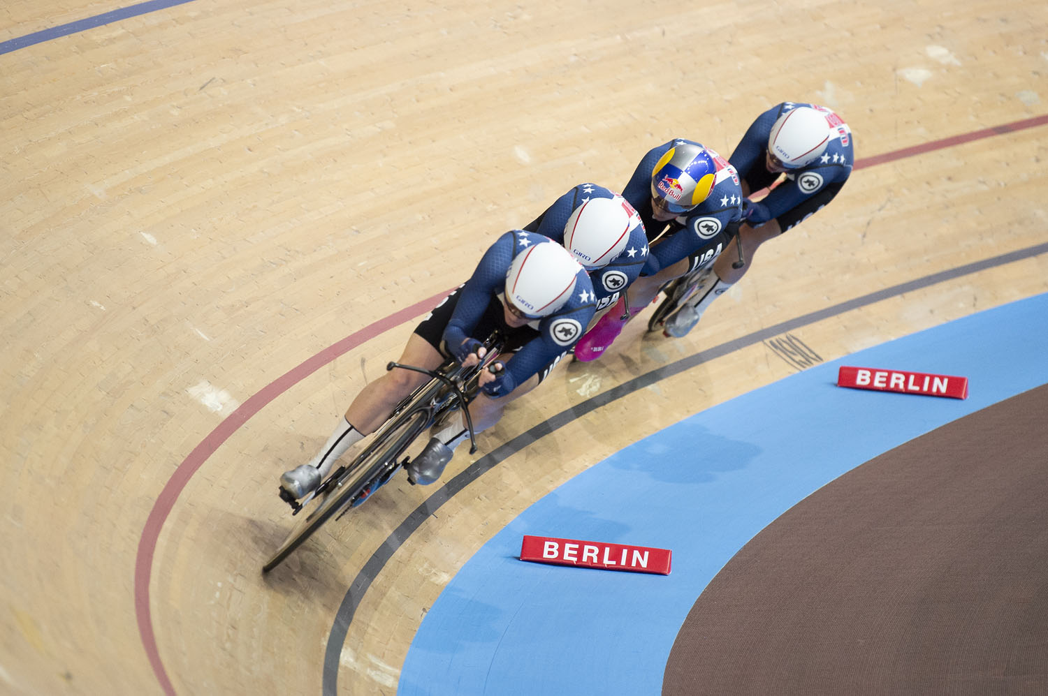 De momento me he centrado en persecución por equipos. Comparado con otras disciplinas, no domina la estrategia sino correr de forma suave, fluida y consistente. Tienes que ser capaz de mantener la línea para estar en el rebufo y no exponer tus compañeras al aire. Los relevos, en los que se sube y baja del peralte, tienen que hacerse en un solo movimiento fluido, o sino te encuentras persiguiendo al final del grupo. Sólo he estado corriendo durante 12 meses, mientras que hay equipos con 8 años de experiencia. Me gusta la mecánica del grupo, las sutilezas, y disfruto en un ambiente de rutina de entrenamiento. Además, es totalmente compatible con ciclismo de ruta, mi otro gran foco de atención.