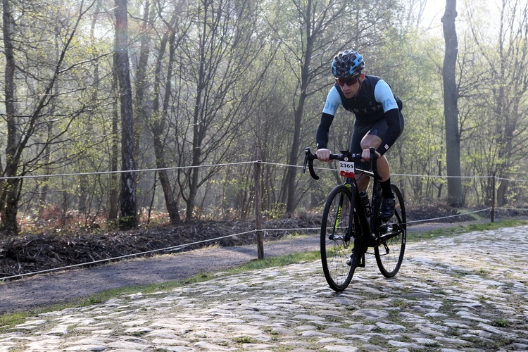En nuestro caso, rodamos los primeros 50 km en 1’5 horas, pero todo fue un espejismo al llegar al Bosque de Arenberg donde la realidad nos abofeteó y sacudió de pleno al pelotón en el que rodábamos hasta el momento. Tan solo unos metros bastó para que empezaran a aparecer los primeros pinchazos y el primer ajuste en la presión de los neumáticos.