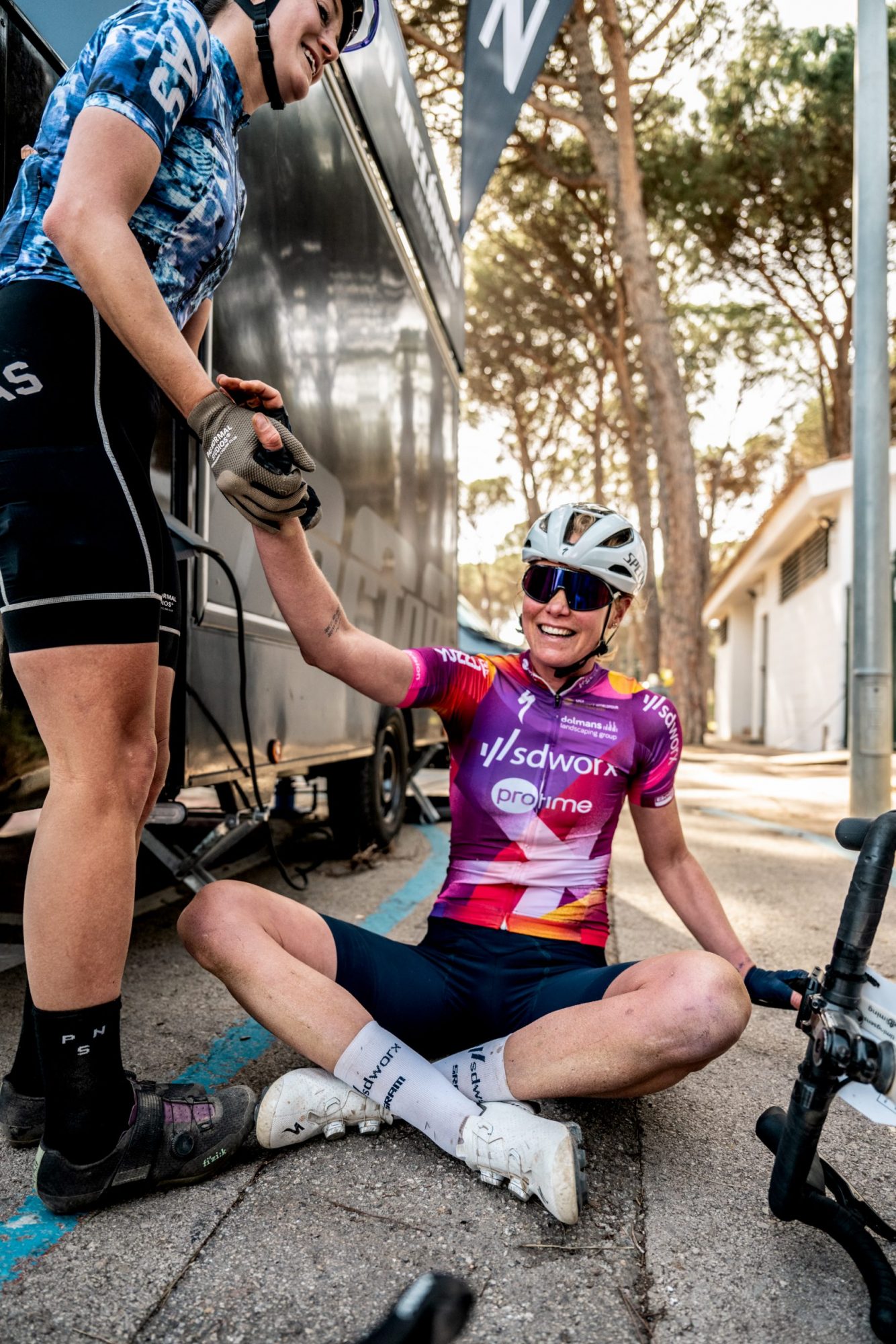Ashleigh se sentía tan bien que incluso intentó irse en solitario, y sobre el kilómetro 40 tenía una cómoda ventaja. Fue atrapada en el largo tramo llano por el grupo perseguidor de cuatro ciclistas, y las cinco cooperaron como si fueran compañeras de equipo. Luego llegó el momento de las tácticas y Geerike Schreurs logró crear una brecha en los últimos cientos de metros que pudo mantener hasta la línea. Fue realmente inspirador verlas felicitándose y riendo como un grupo unido, algo que no se ve en otros deportes o disciplinas.