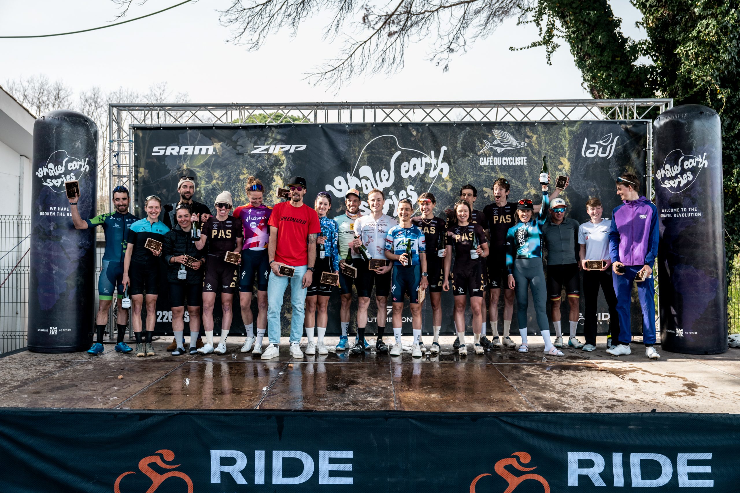 Tras el esfuerzo, descendieron de regreso a Sant Gregori para la presentación oficial de las Gravel Earth Series. Santa Vall es una de las 14 pruebas del grupo Gravel Earth (también hay un grupo ‘Gravel Earth Global’ compuesto por 5 carreras con más puntos en juego) y los ganadores se iban a llevar 750 puntos. La clasificación final incluye las dos mejores puntuaciones del año más los puntos de la gran final. Los equipos y ciclistas individuales llamados a liderar las Gravel Earth Series también subieron al escenario para compartir sus pensamientos sobre esta segunda edición de la serie y sus objetivos para el año.