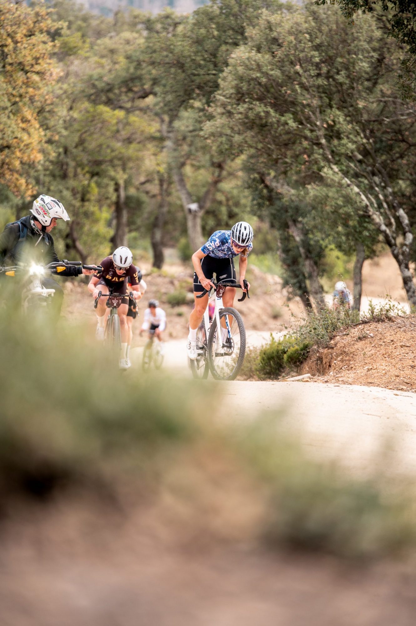 La aproximación al primer tramo fue mayoritariamente llano y parte del mismo siguió la famosa Via Verde, abierta al tráfico de ciclistas y excursionistas locales. El ritmo en el grupo de los 50 mejores hombres fue conservador, pero un gran grupo de corredores que venían de la salida abierta realmente apretaron en la sección neutralizada y, poco después del inicio del primer segmento, alcanzaron a parte de los élite. Por el contrario, también pudimos ver cómo Asbjorn Hellemose, tercero en la primera etapa, dejaba ir al grupo de cabeza para iniciar él solo el esfuerzo y poder elegir la mejor trazada.