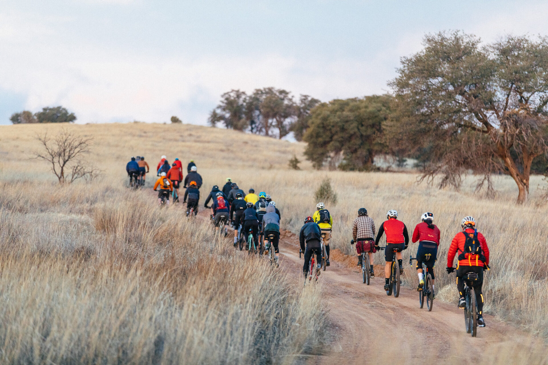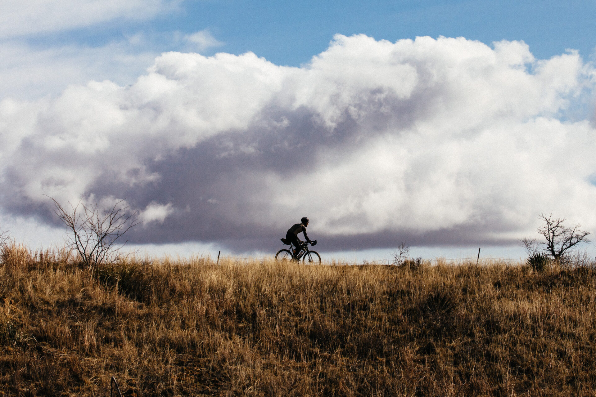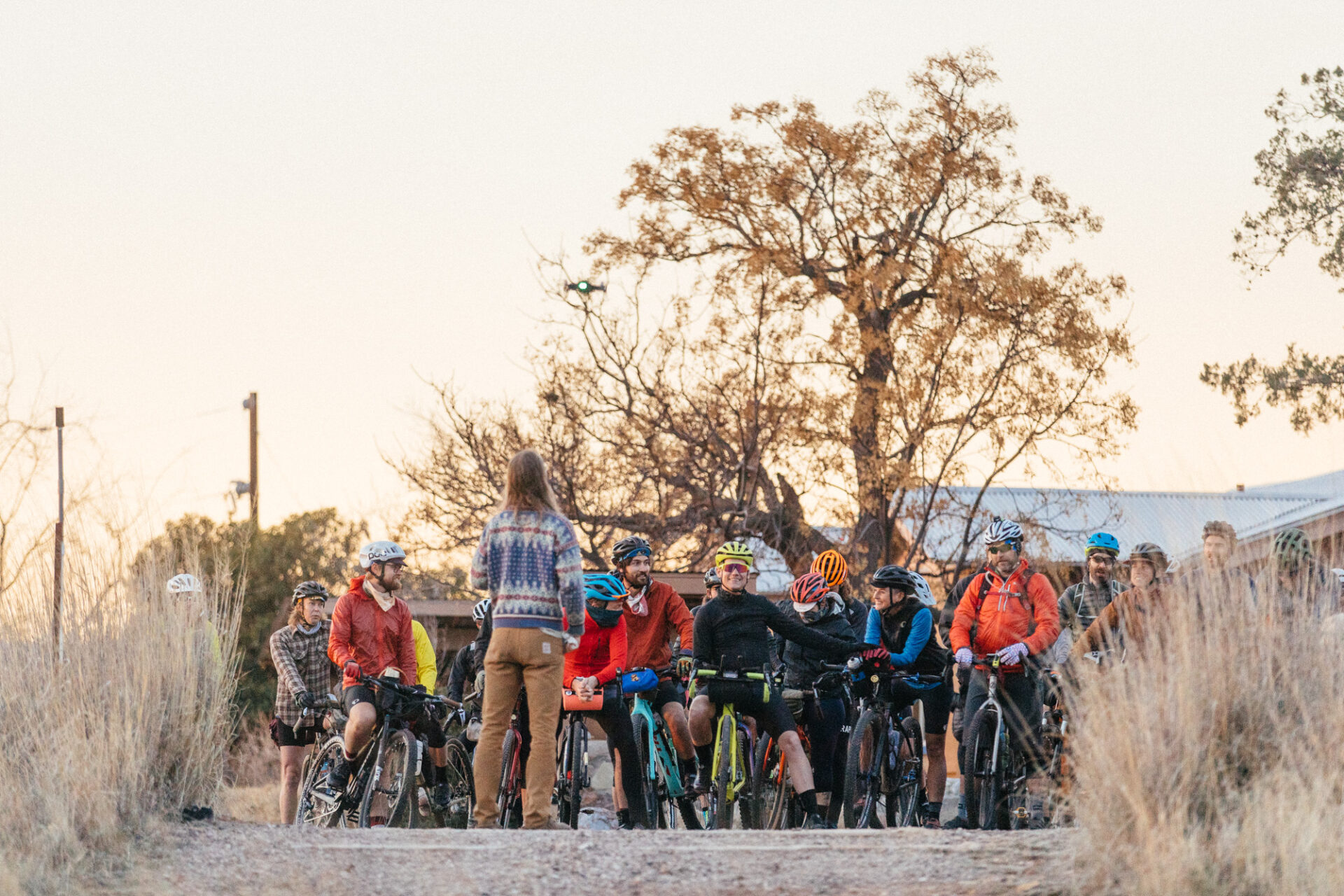 «La carrera comenzó el sábado a las 7 de la mañana en punto con el desayuno proporcionado por Benedict y las bebidas espresso de mis amigos Ty and Julia. Tuvimos mucha suerte con el tiempo (nevó dos días después) y a los pocos minutos de la salida de la carrera vimos un hermoso amanecer sobre las montañas Mustang. Fue un buen comienzo del día. La carrera fue rápida. Los vientos de cola en el lado oeste del campo han propiciado unos tiempos increíblemente rápidos (el primero fue de 7,5 horas) a pesar del terreno técnico a lo largo de la ruta. Mi meta personal era terminar de ver la puesta de sol en el rancho otra vez y eso fue lo que hice. Después de un mes y medio de planificación, una semana de filmación para la película Ruta del Jefe y 10 horas de carreras, regresar a la propiedad del rancho para ver la luz del atardecer púrpura y rosa sobre las montañas Mustang fue una experiencia surrealista y eufórica para mí. El punto culminante de mi día fue compartir historias de guerra alrededor de la mesa con otros corredores mientras esperábamos a que los ~30 restantes terminaran en la oscuridad con temperaturas por debajo de los -1 grados. Desde donde estábamos esperando pudimos ver los faros de los ciclistas que iluminaban la colina de la propiedad del rancho en la oscuridad. A partir de ese momento todavía les tomaría entre 45 minutos y una hora llegar a la meta, pero me encantaba ver los faros mientras entraban. Me impresionó tanto que a pesar del largo día, pedaleando en la oscuridad y con temperaturas heladas, todos los que volvían tenían una sonrisa en la cara. Fue un grupo fuerte y agradecido.»