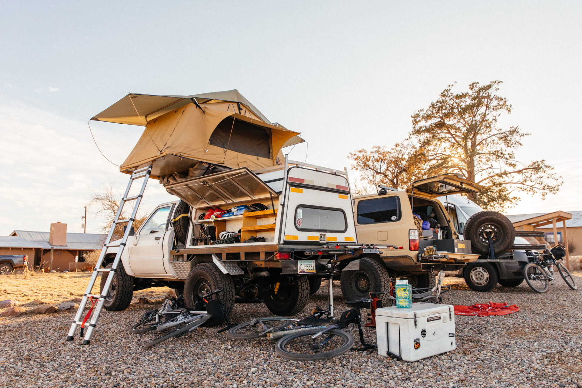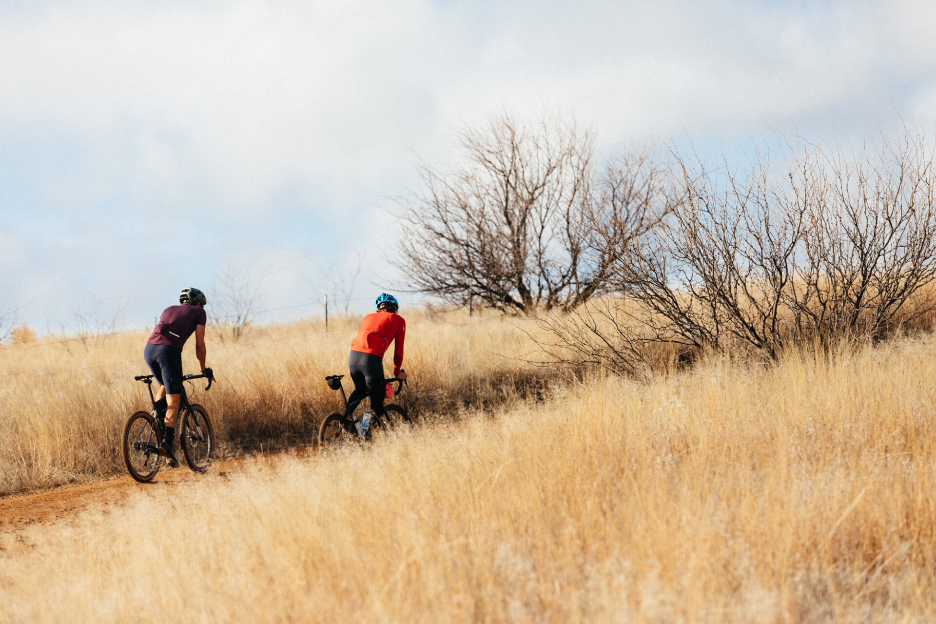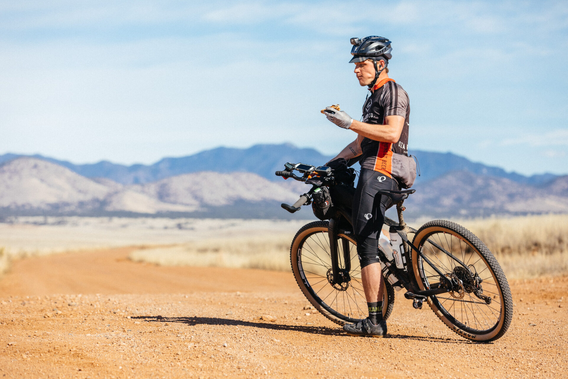 «La carrera comenzó el sábado a las 7 de la mañana en punto con el desayuno proporcionado por Benedict y las bebidas espresso de mis amigos Ty and Julia. Tuvimos mucha suerte con el tiempo (nevó dos días después) y a los pocos minutos de la salida de la carrera vimos un hermoso amanecer sobre las montañas Mustang. Fue un buen comienzo del día. La carrera fue rápida. Los vientos de cola en el lado oeste del campo han propiciado unos tiempos increíblemente rápidos (el primero fue de 7,5 horas) a pesar del terreno técnico a lo largo de la ruta. Mi meta personal era terminar de ver la puesta de sol en el rancho otra vez y eso fue lo que hice. Después de un mes y medio de planificación, una semana de filmación para la película Ruta del Jefe y 10 horas de carreras, regresar a la propiedad del rancho para ver la luz del atardecer púrpura y rosa sobre las montañas Mustang fue una experiencia surrealista y eufórica para mí. El punto culminante de mi día fue compartir historias de guerra alrededor de la mesa con otros corredores mientras esperábamos a que los ~30 restantes terminaran en la oscuridad con temperaturas por debajo de los -1 grados. Desde donde estábamos esperando pudimos ver los faros de los ciclistas que iluminaban la colina de la propiedad del rancho en la oscuridad. A partir de ese momento todavía les tomaría entre 45 minutos y una hora llegar a la meta, pero me encantaba ver los faros mientras entraban. Me impresionó tanto que a pesar del largo día, pedaleando en la oscuridad y con temperaturas heladas, todos los que volvían tenían una sonrisa en la cara. Fue un grupo fuerte y agradecido.»