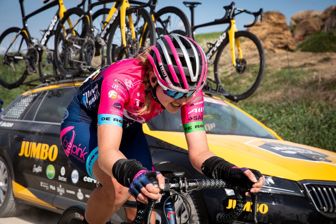 Durante la carrera, Laura estaba en el coche del FDJ NAquitaine Futuroscope con los soigneurs del equipo entregando bidones o ayudando con los cambios de rueda. Las corredoras del equipo, entre las que se encontraban las siempre sonriente Cecilie Uttrup Ludwig, Marta Cavalli o Brodie Chapman, mostraron su combatividad durante la última parte de la carrera, terminando con dos de ellas entre las 10 primeras.