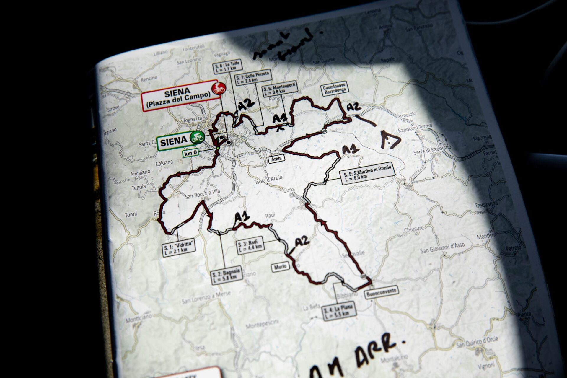 El día anterior, Peloton Brief se unió a BORA-hansgrohe para su vuelta de reconocimiento, lo que le dio una nueva idea sobre algunas ubicaciones potenciales, aunque, en una carrera como la Strade Bianche, cada kilómetro del recorrido puede ser fuente de contenido de alta calidad.
