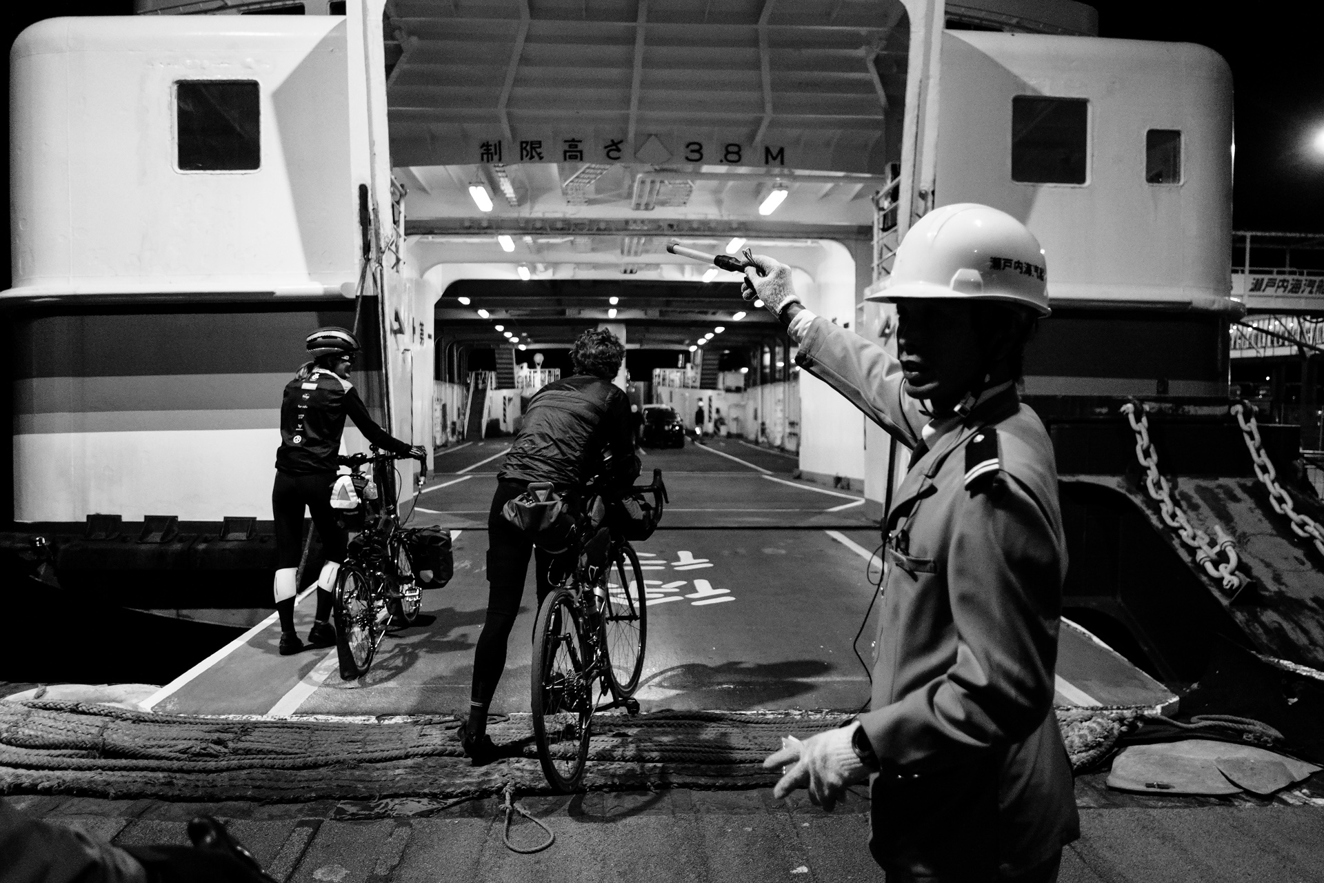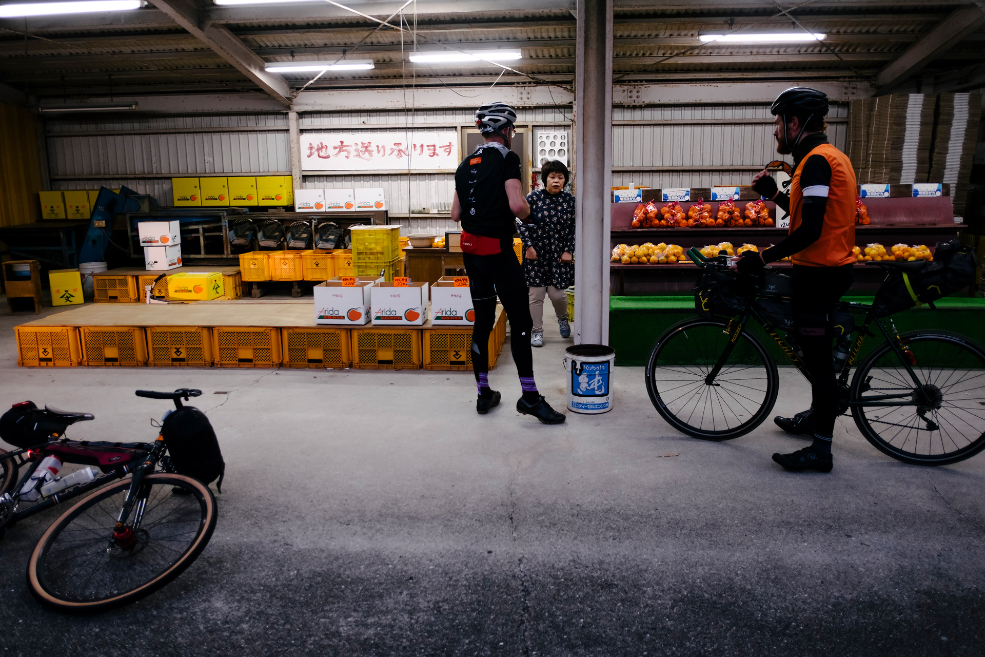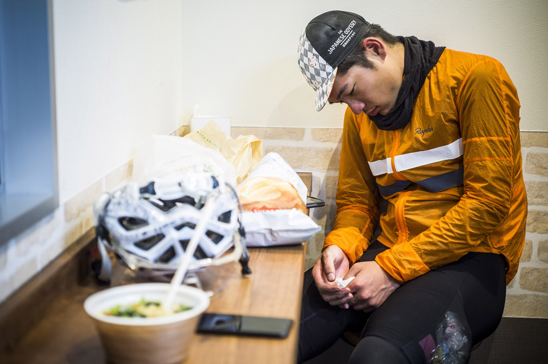 Un muy buen dia fue cuando me quedé sin batería en un pequeño pueblo en la ruta de peregrinaje de Kumano Kodo. No quedaba nada: GPS, luces, batería externa, teléfono. Aún tenía otros 100 km hasta la costa y no iba a haber ningún sitio en el que cargar los dispositivos hasta que llegara allí. Así pues, me paré en un albergue juvenil, ocupando todos los enchufes de la habitación, y hablé con una pareja belga que estaban ahí y conocían la Transcontinental Race. Me fuí a la 1 de la mañana y tuve un magnífico, sino un poco escalofriante, trayecto hasta la costa. ‘¿Hay osos en Japón?’ era mi solo pensamiento mientras escuchaba ruidos en el bosque. Justo al llegar a la costa me encontré con dos participantes más en un supermercado de 24h que habían parado por desayuno, de modo que me junté a ellos.