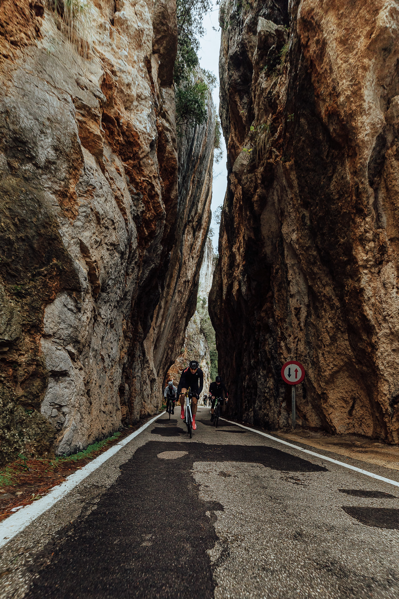 Una vez a nivel de mar, en Sa Calobra, hicimos un recuento rápido para asegurar que estábamos todos y empezamos a deshacer el camino para enfrentarnos a los 10.5 km al 6.7% de desnivel medio que nos esperaban. Por suerte, la lluvia nos daba un respiro.