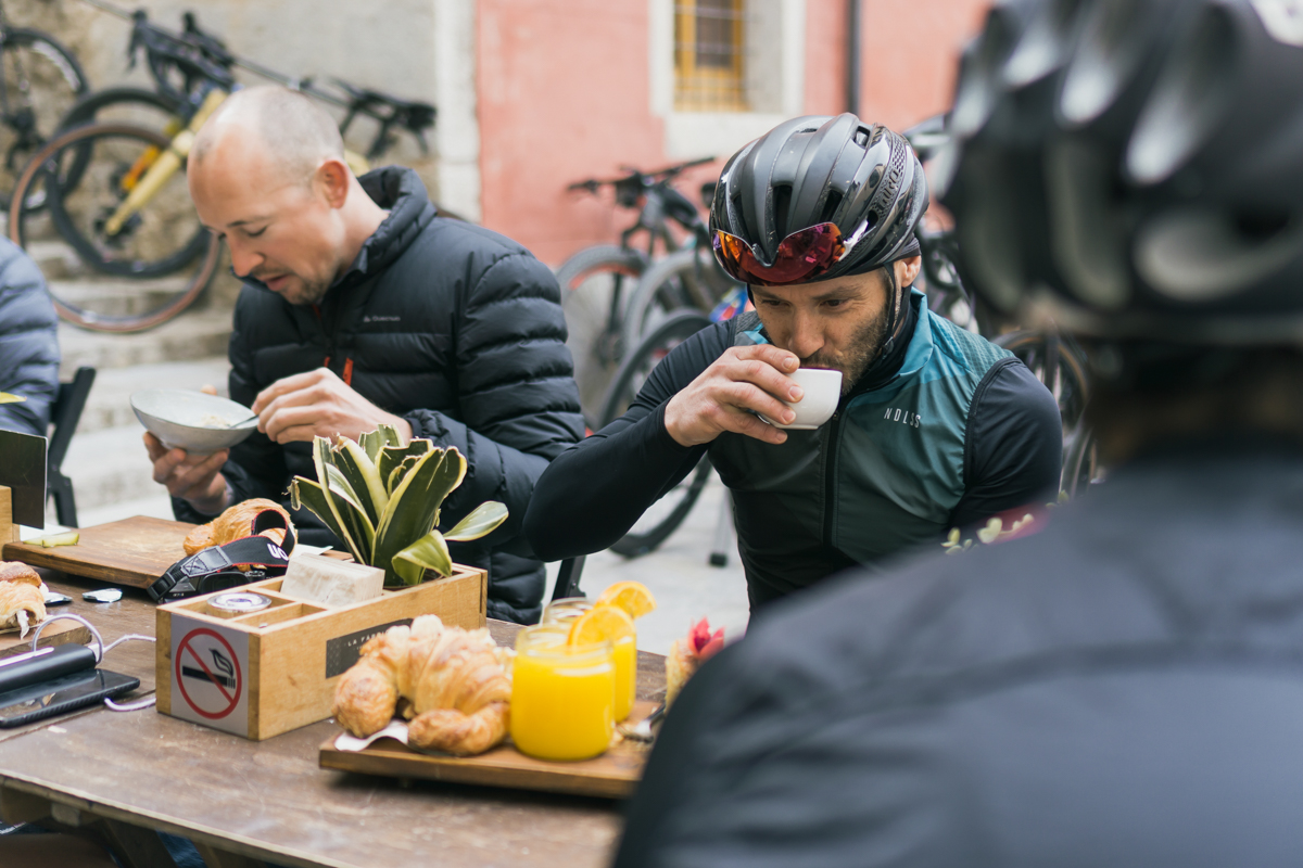 Nos encontramos en la cafetería ciclista por excelencia de la ciudad, La Fábrica Girona, capitaneada por el ex-ciclista profesional Christian Meier. El sitio es perfecto para repostar antes o después de salir en bici; buena calidad, buen café y gran variedad de productos que, junto al ambiente ciclista que siempre hay es una opción ideal.