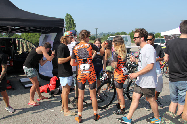 Hacía mucho calor y faltaba poco para el gran momento. Era las 16:30 y las 9 participantes en la categoría femenina se encontraban en la línea de salida hambrientas de gloria. Doce vueltas al trazado repleto de curvas, mientras que el sudor y el calor no dejaban ni respirar. El duelo entre Fleur Faure (POLO&BIKE) y Stefania Baldi (DESGËNA) estaba asegurado después de la derrota de la italiana en el NMC que se celebró en Dijon hace unos meses. Desde el inicio de la carrera el grupo principal compuesto por Stefania Baldi, Fleur Faure, Carla Nafria (FIXEDLAND) y Mariela Farabello (Pista BCN x Moreno 112) se destaca del resto imponiendo un ritmo feroz.