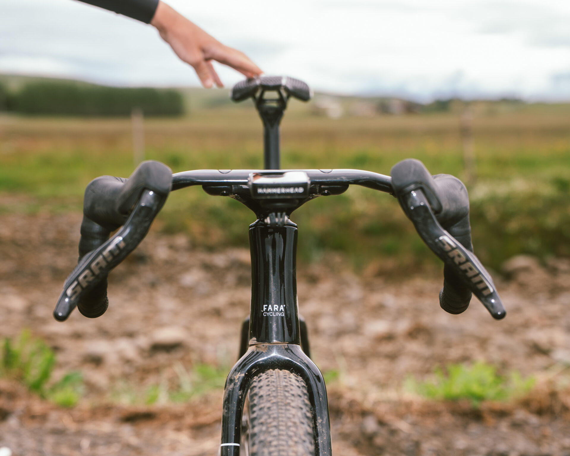 The flare between the top and bottom can vary between 8 and 12 degrees depending on the handlebar size. Additionally, thanks to the flat interface design between the handlebar and the stem, it allows for a 10 mm longitudinal adjustment, offering the possibility of adapting the handlebar grip for a more aerodynamic or, conversely, more comfortable position. As for accessories, the cockpit is ready to accommodate Fara’s signature aerobars, or a mount adaptable to any brand of bike computer.