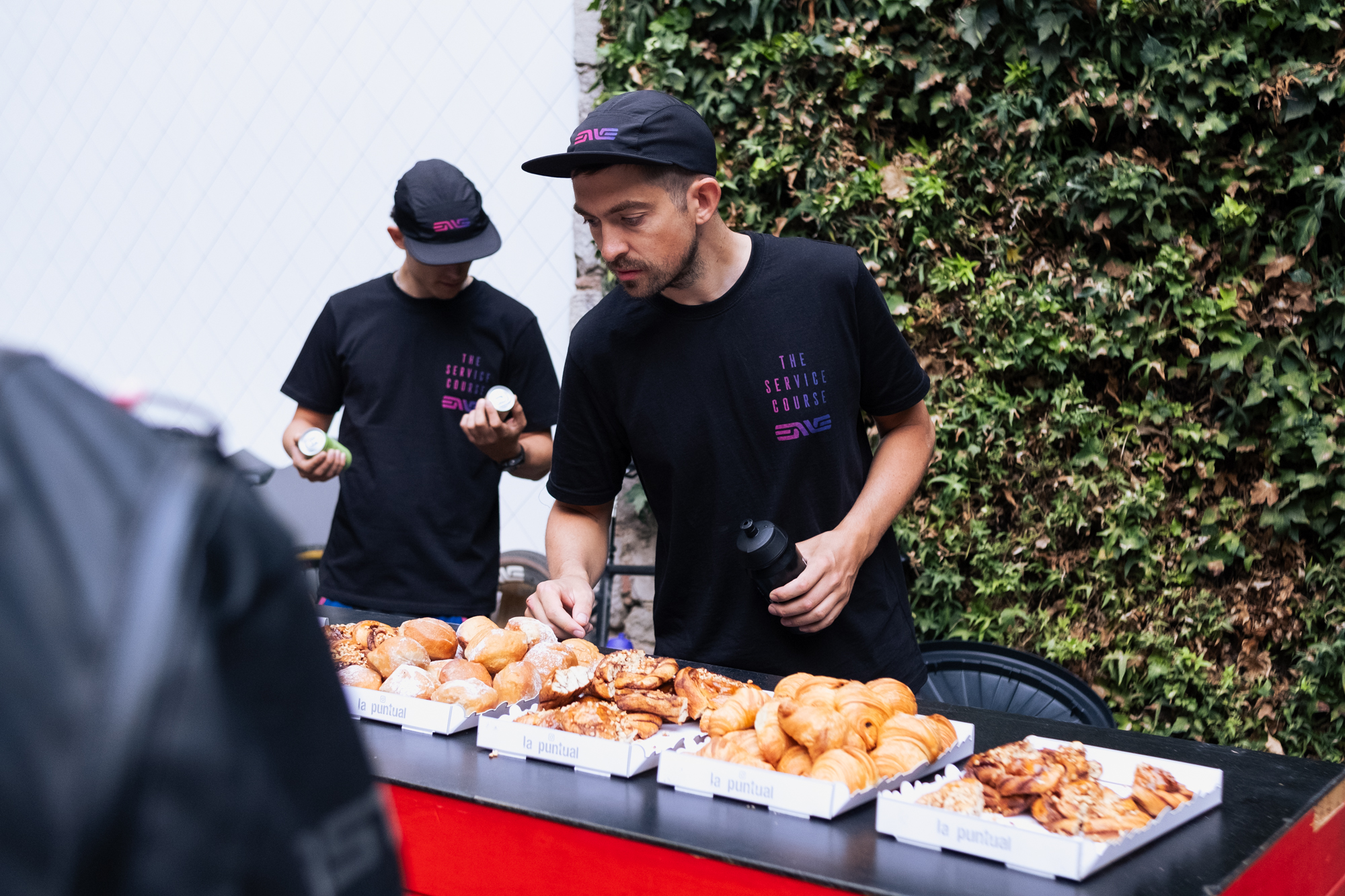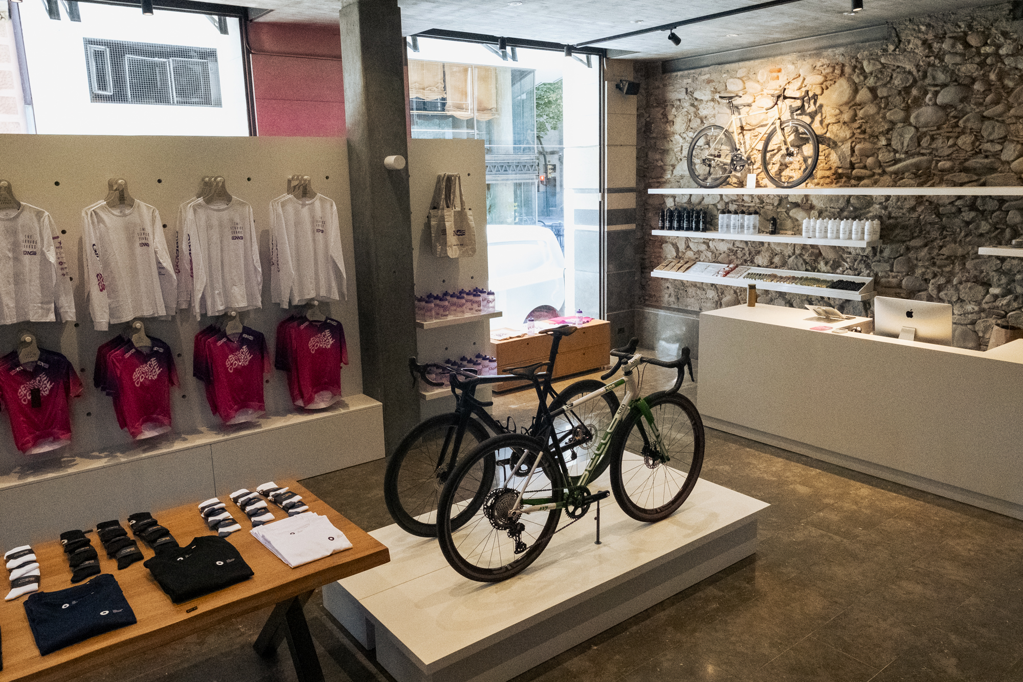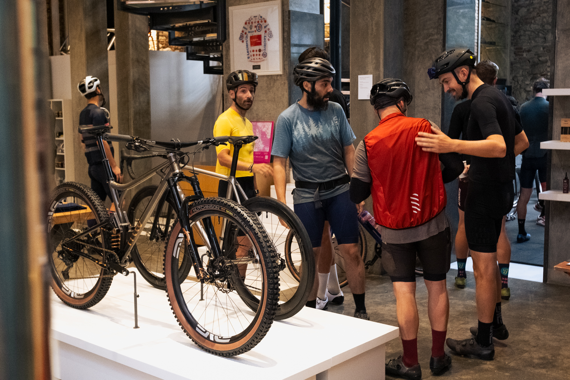 That and all the other gravel rides of the weekend had the new location of The Service Course as their starting and ending point. Located on the same street, the store was GiRodeo’s base camp, and each part of the building had a different functionality. In the backyard, you could leave your bike in sight while you had a coffee from Oniria or some pastries from La Puntual. The mechanics continued doing their work in plain sight, and the event’s capsule collection took up much of the ground floor.