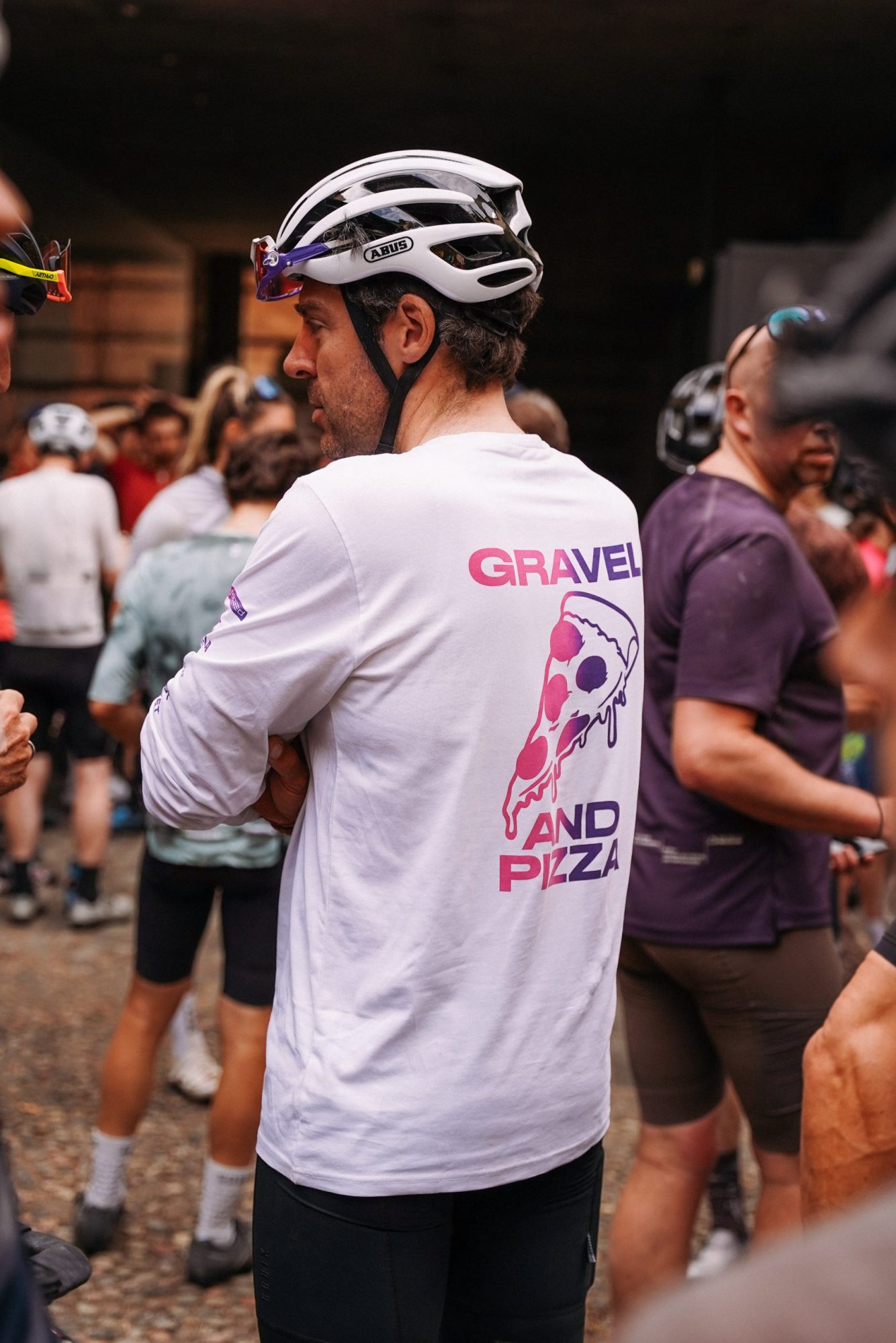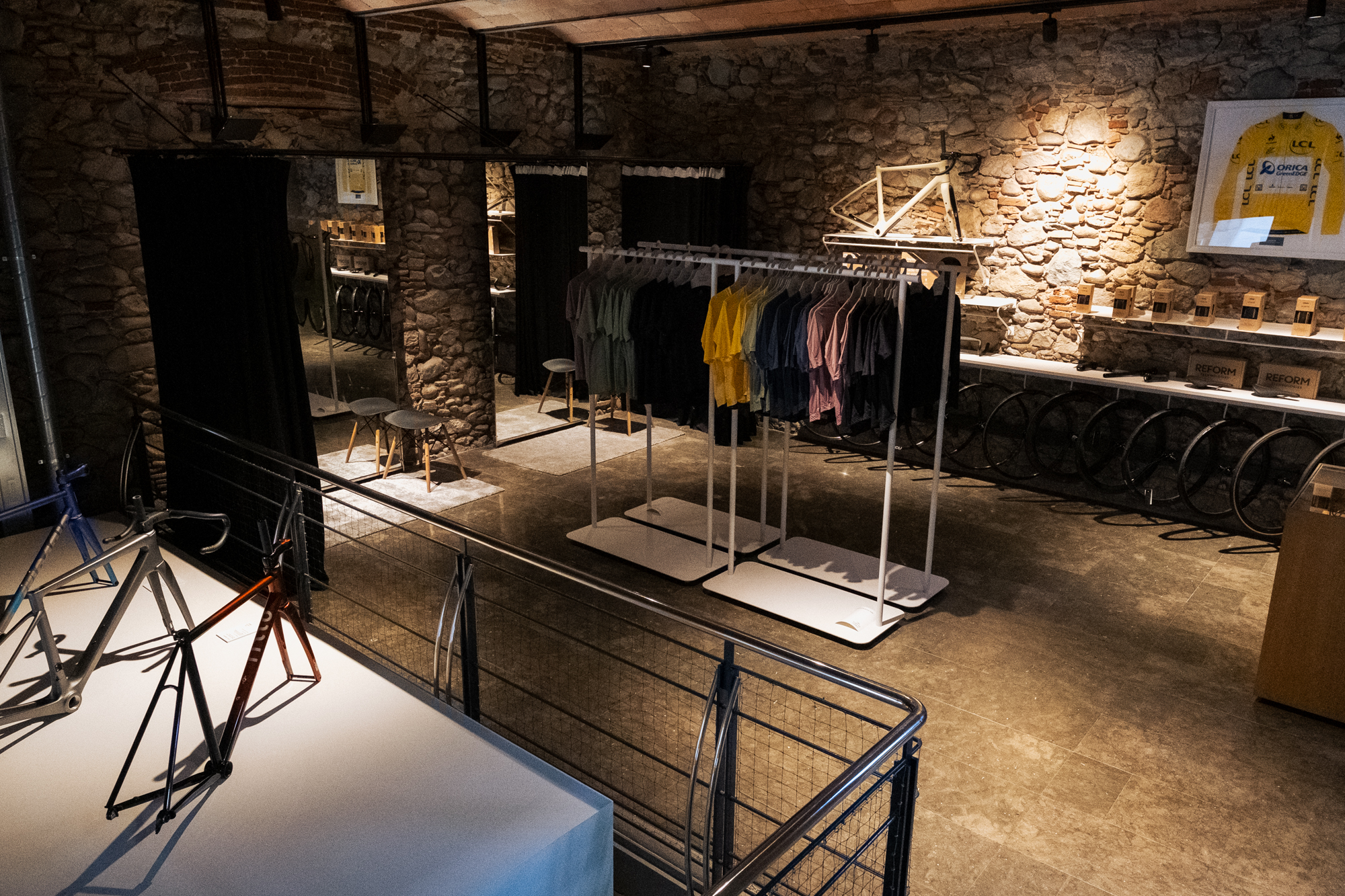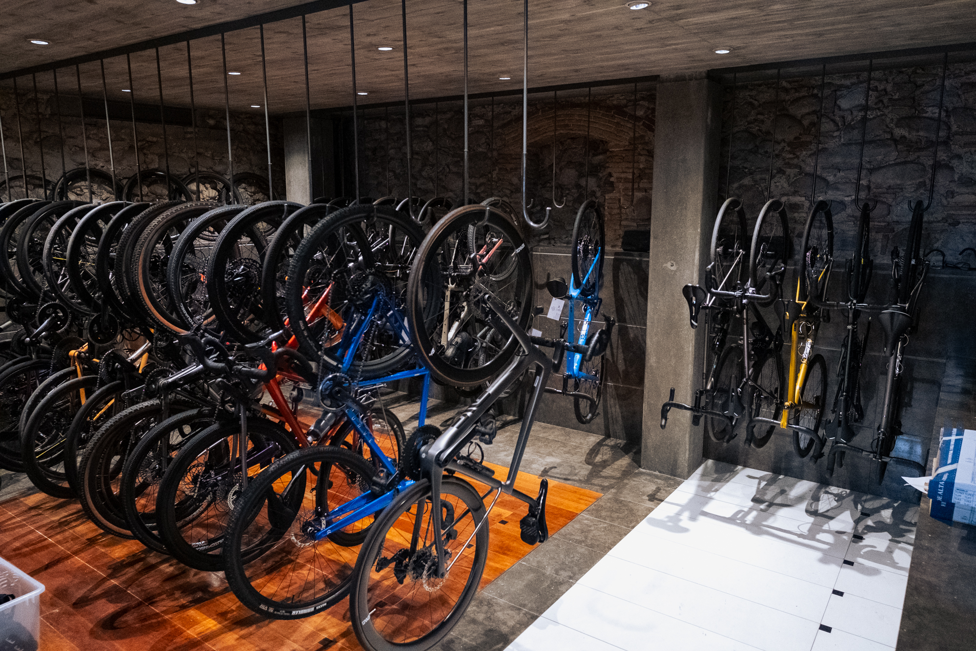 That and all the other gravel rides of the weekend had the new location of The Service Course as their starting and ending point. Located on the same street, the store was GiRodeo’s base camp, and each part of the building had a different functionality. In the backyard, you could leave your bike in sight while you had a coffee from Oniria or some pastries from La Puntual. The mechanics continued doing their work in plain sight, and the event’s capsule collection took up much of the ground floor.