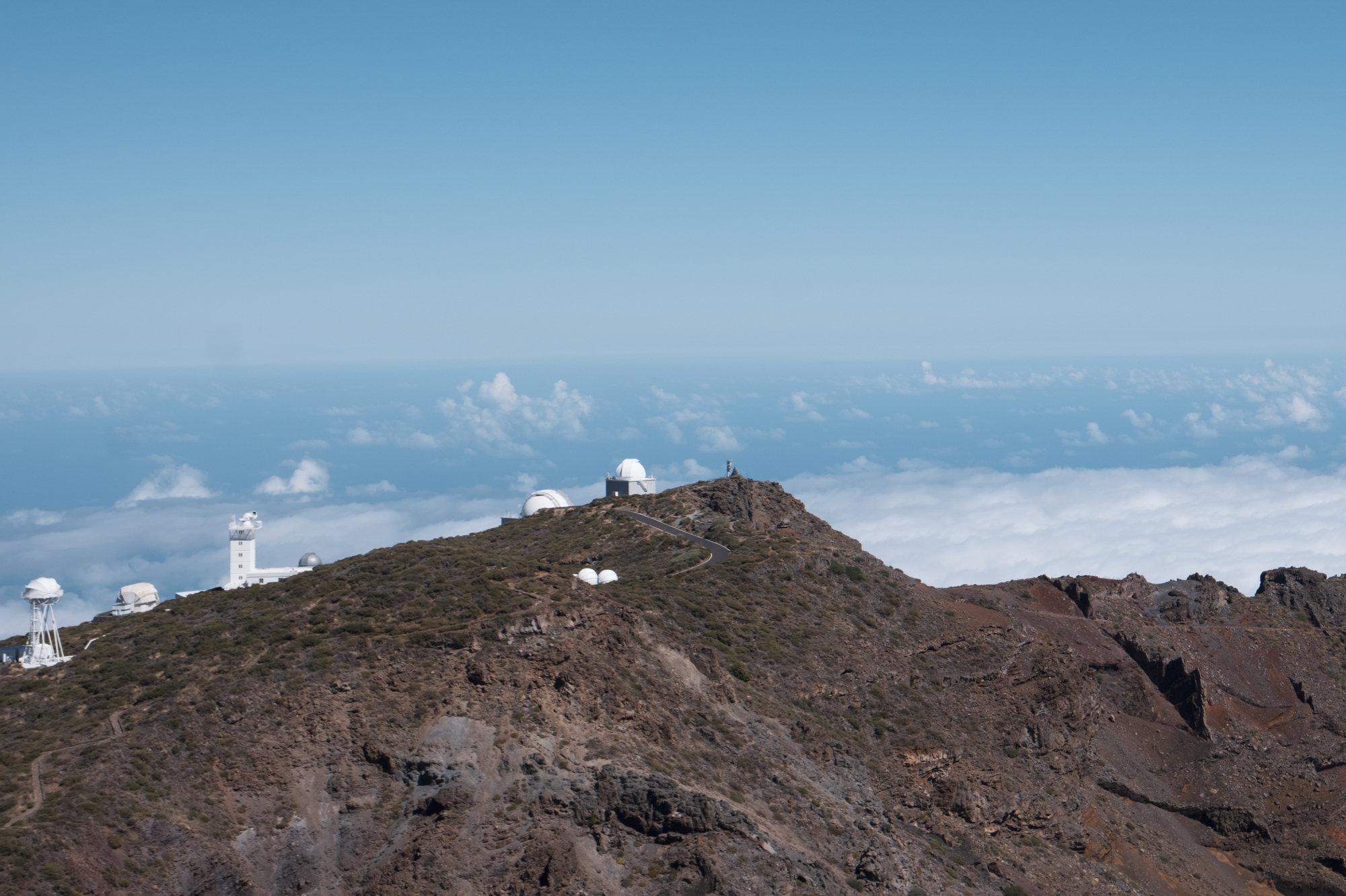 The last kilometers to the top were hard but rewarding. We rode past the Roque de Los Muchachos Observatory. At that moment we did not know it, but later we were told that the site features the largest optical-infrared telescope in the world, in addition to other smaller infrastructures to observe and analyze the universe.