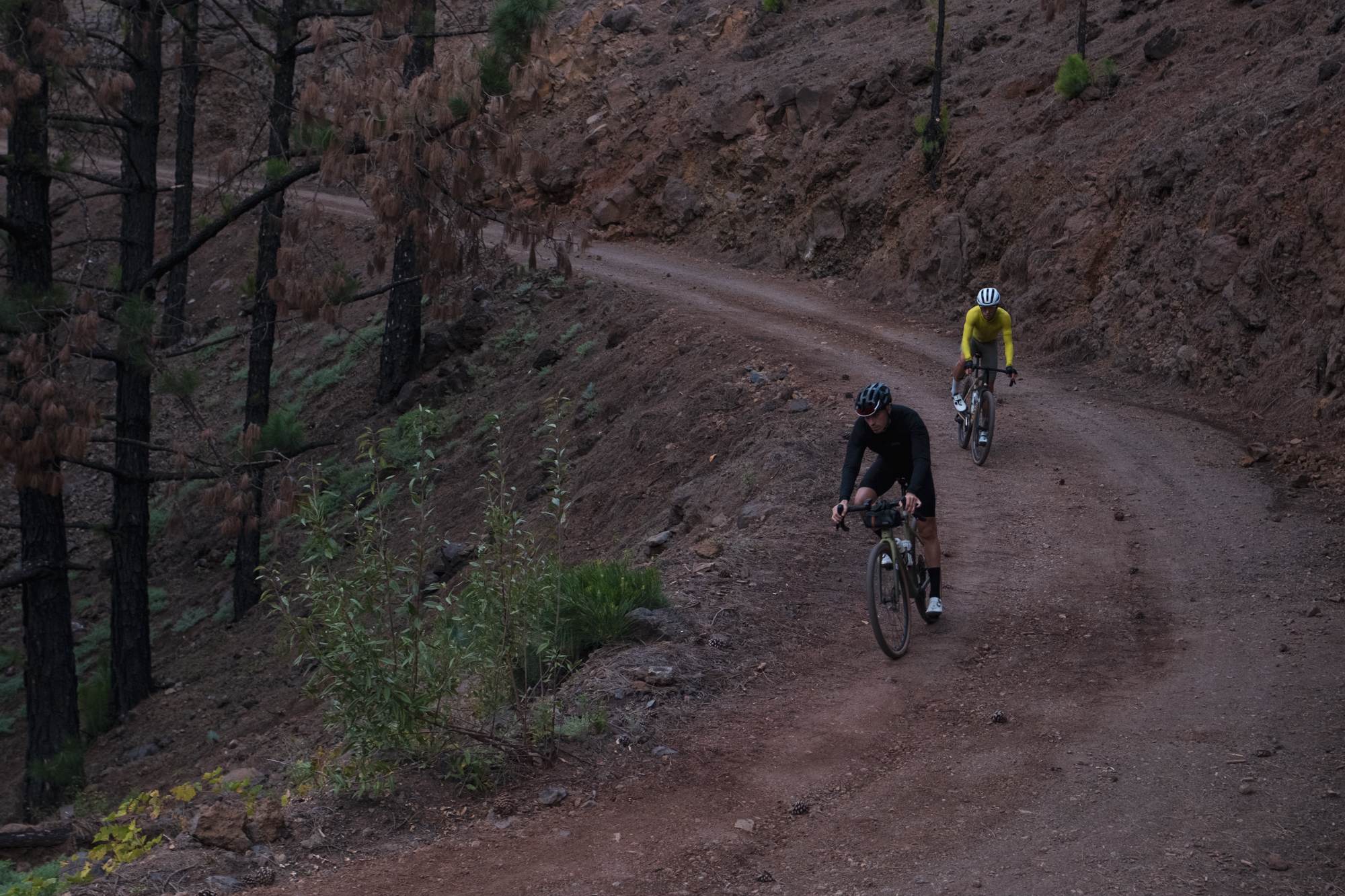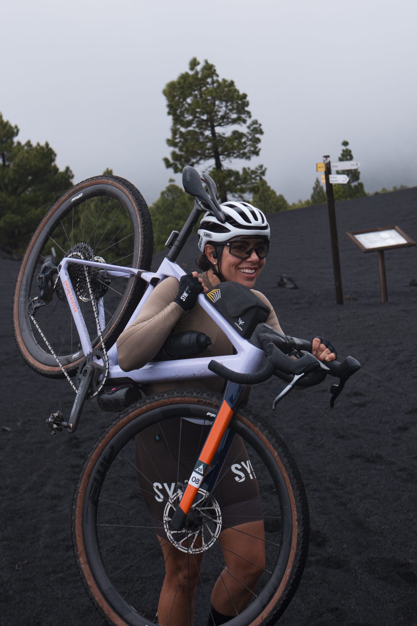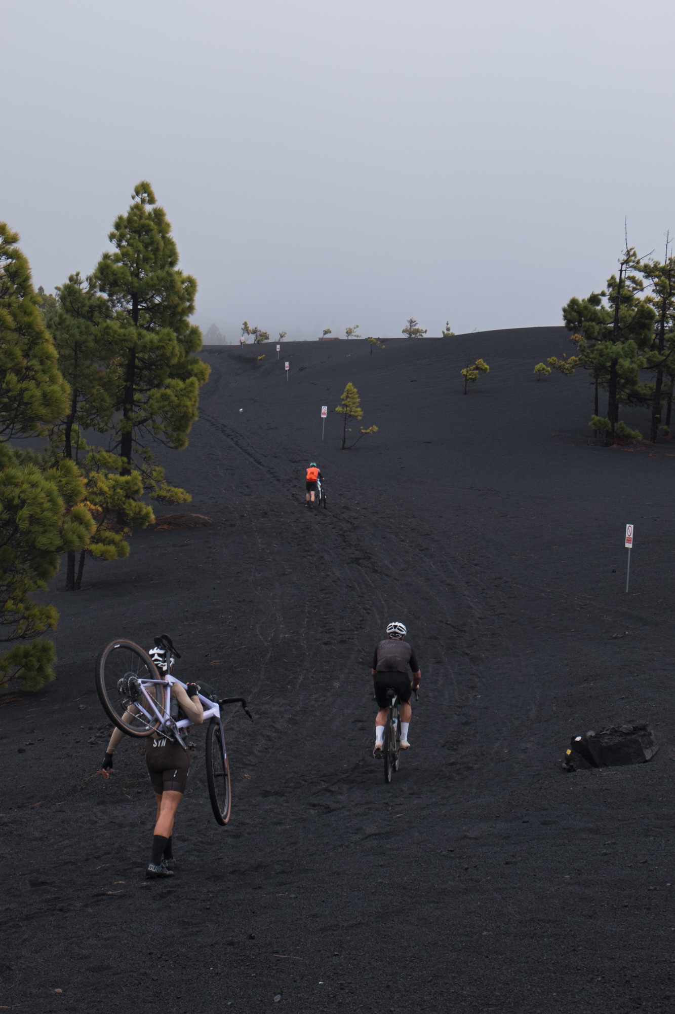 Luckily, the weather changed not long after we started spinning the legs. The rain turned into drizzle and then stopped for good. The perfect condition of the gravel paths also raised our mood. We reminded ourselves of how privileged we were to be doing what we love the most in a place like La Palma, and even if we ended up getting used to riding over volcanic sand, it was a unique situation we will never forget.