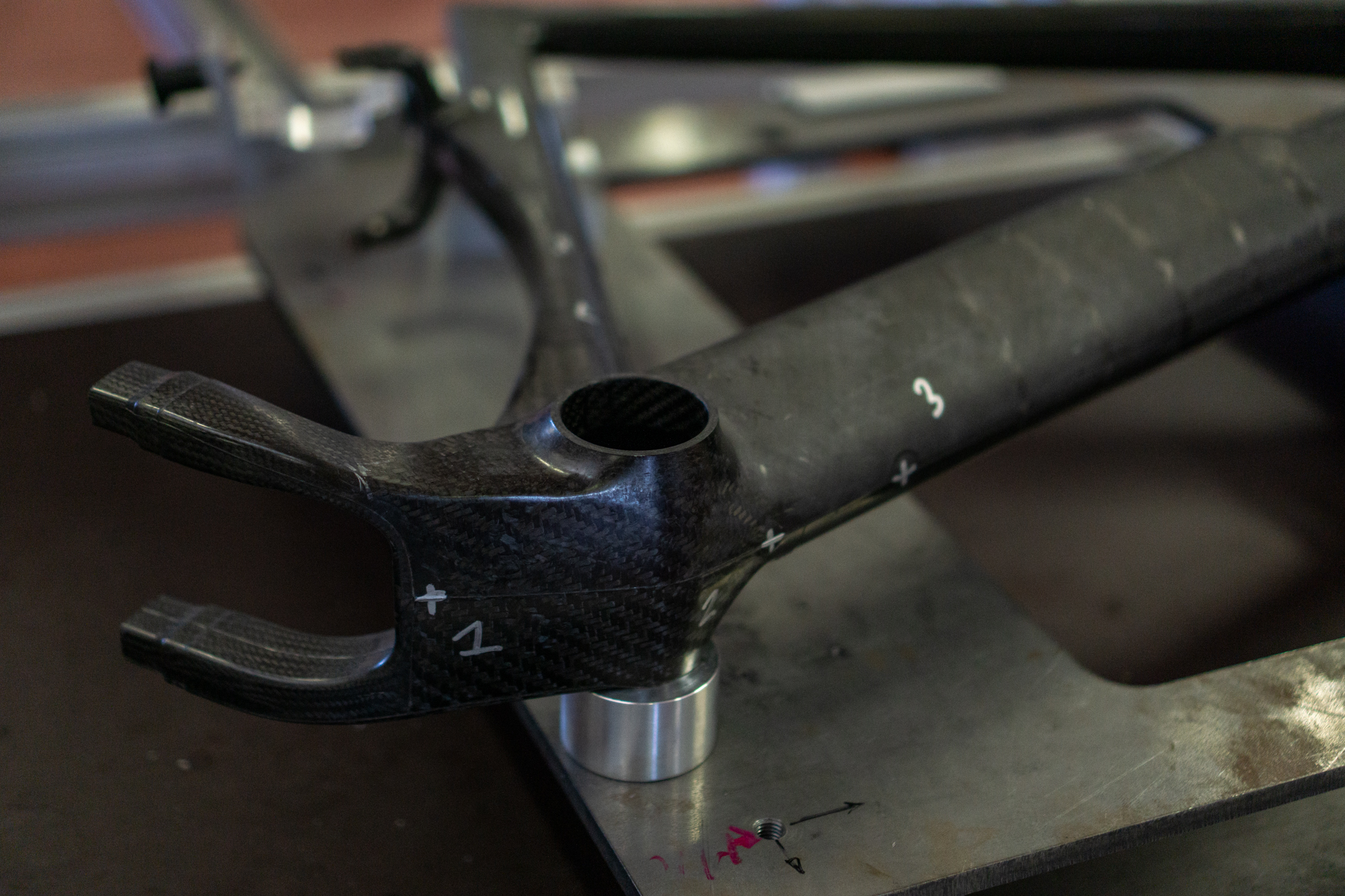 For the fabrication of frames they decided to bet on the use of dry carbon fiber filaments, avoiding the need to use resin (at least until the mold step when it is injected). This technique, known as “filament winding” allows them to create carbon shapes without limitations in terms of the angles at which the fiber filaments are applied. Being able to choose the type of fiber and the grades also makes it easier for them to achieve a more specific geometry and a higher performance for their bikes.