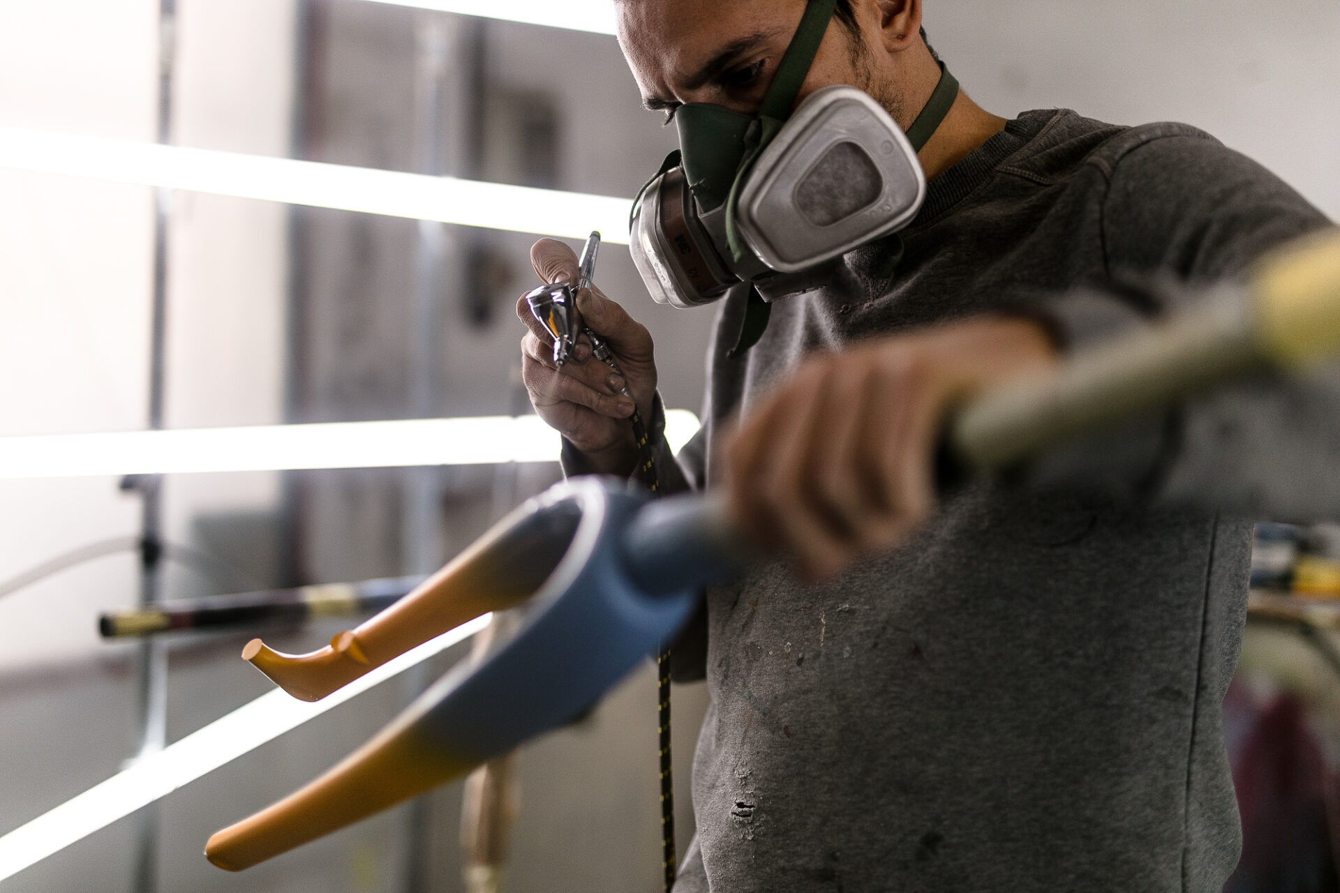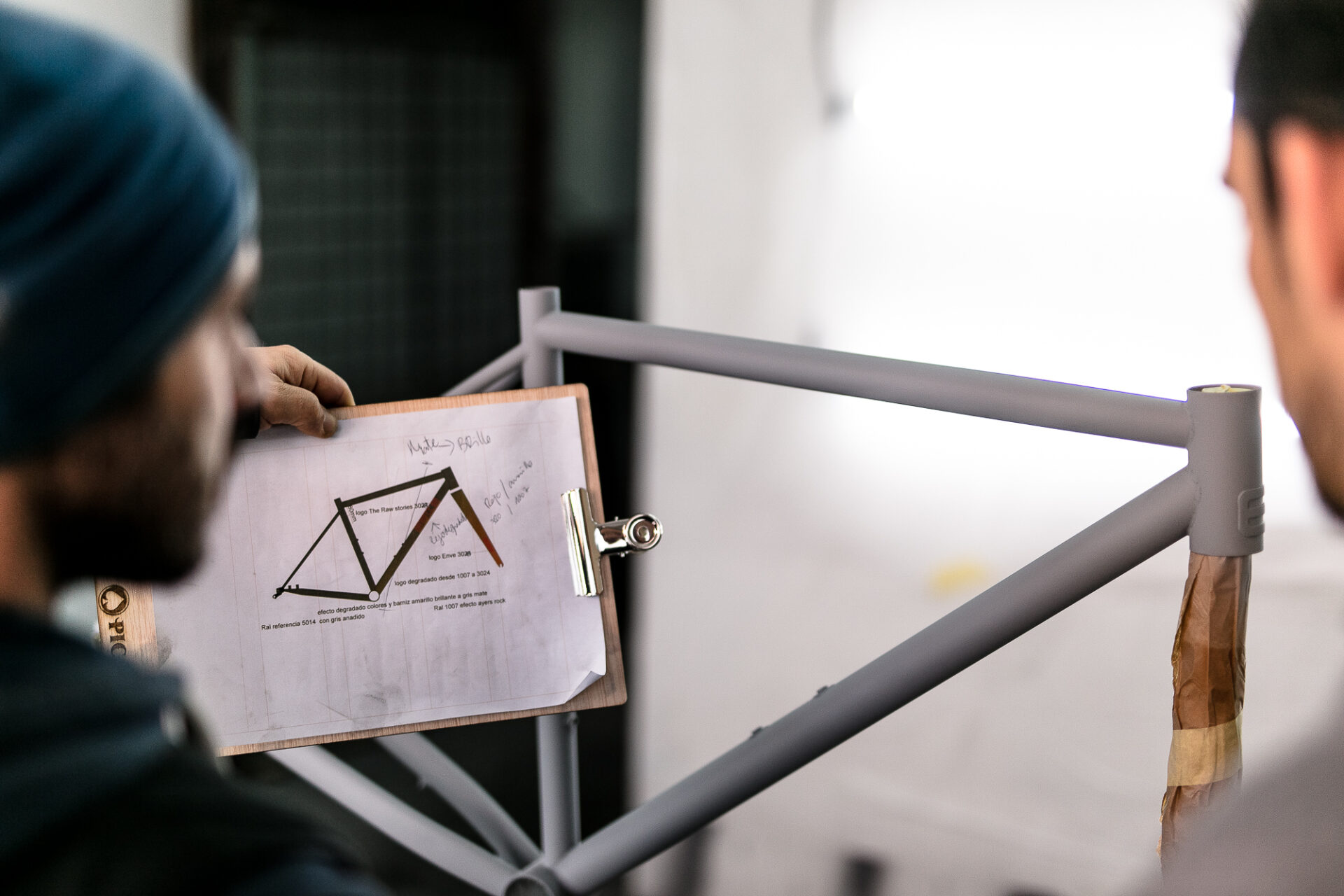 Sometimes it’s not valued, and it’s logical, people don’t know all the work behind it. Sometimes I think… why did I get into this? For example, today I made a frame where the client asked for many things in particular: logos in a certain way, silver leaf… they ask for very complex things and I never know what to say no to, I know it’s possible that it could go wrong but I still do it. Sometimes it’s very difficult to explain how complex it is technically, in steel bikes it’s especially hard to do. For example, if you varnish many times you lose details, it’s a technical challenge that doesn’t happen in carbon bikes or for example a motorbike tank.